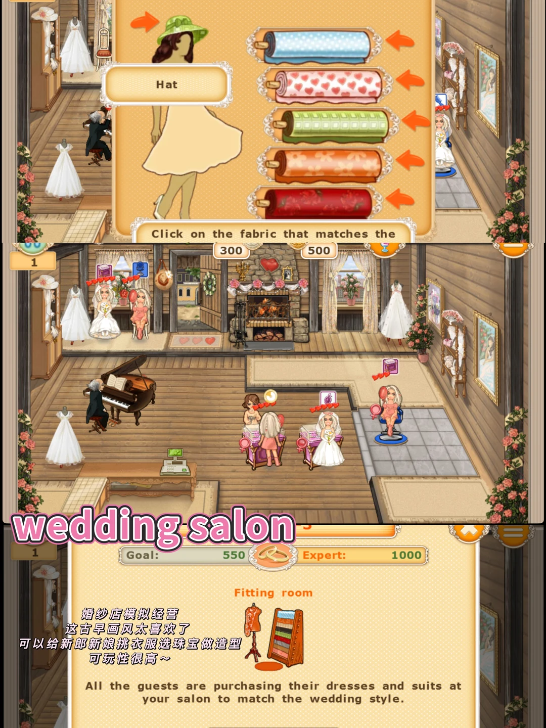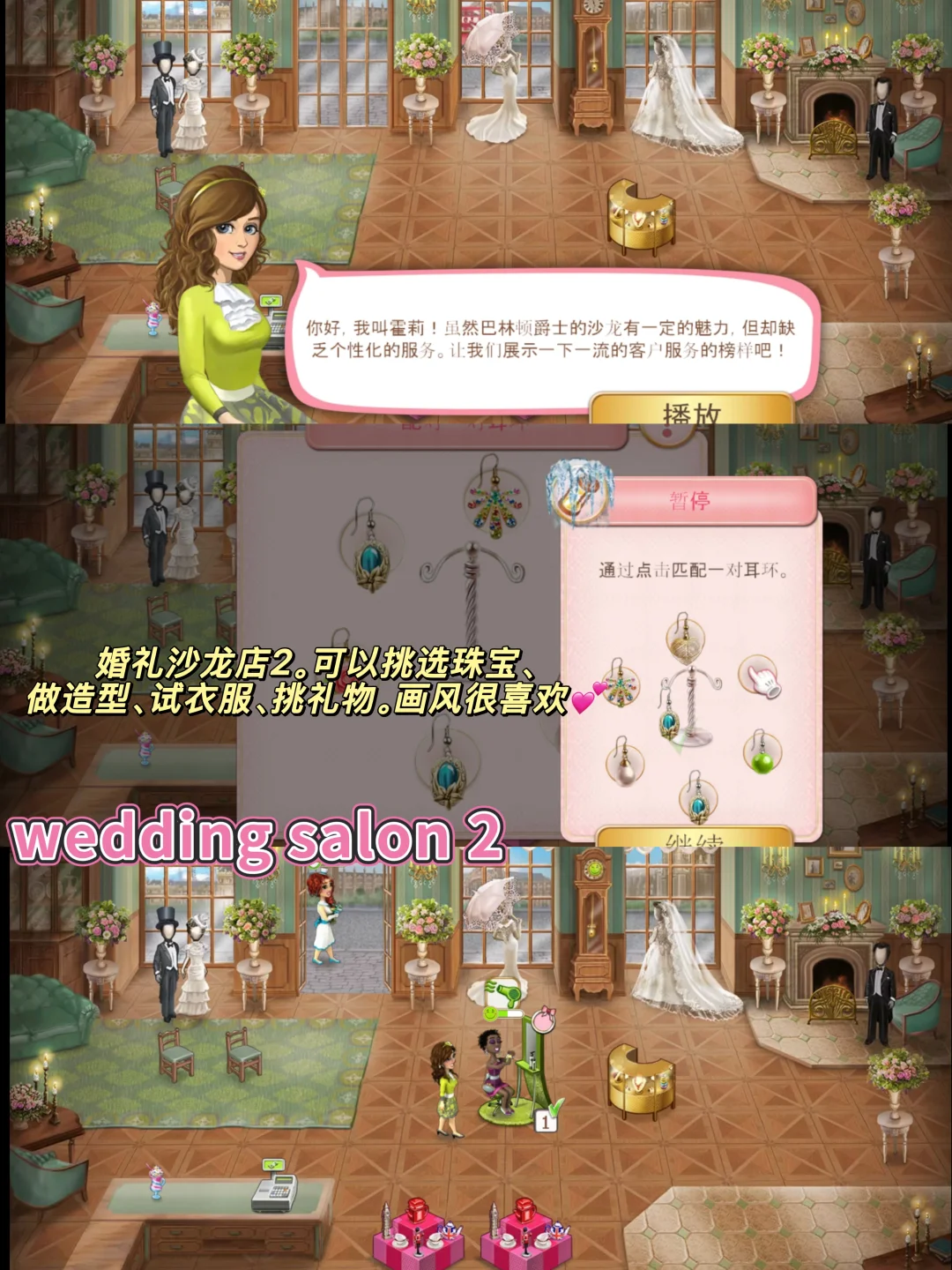 这两个是一系列的,婚纱店模拟经营,画风很古早,操作也很有意思~