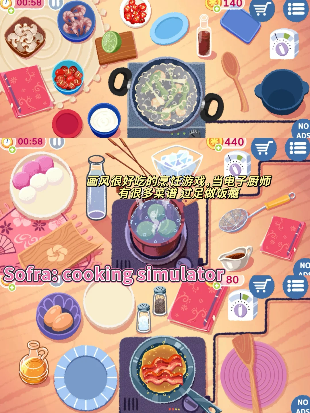 烹饪模拟器 画风炒鸡有食欲,都是很具体的过程 菜谱也很多 爱烹饪的可以试试