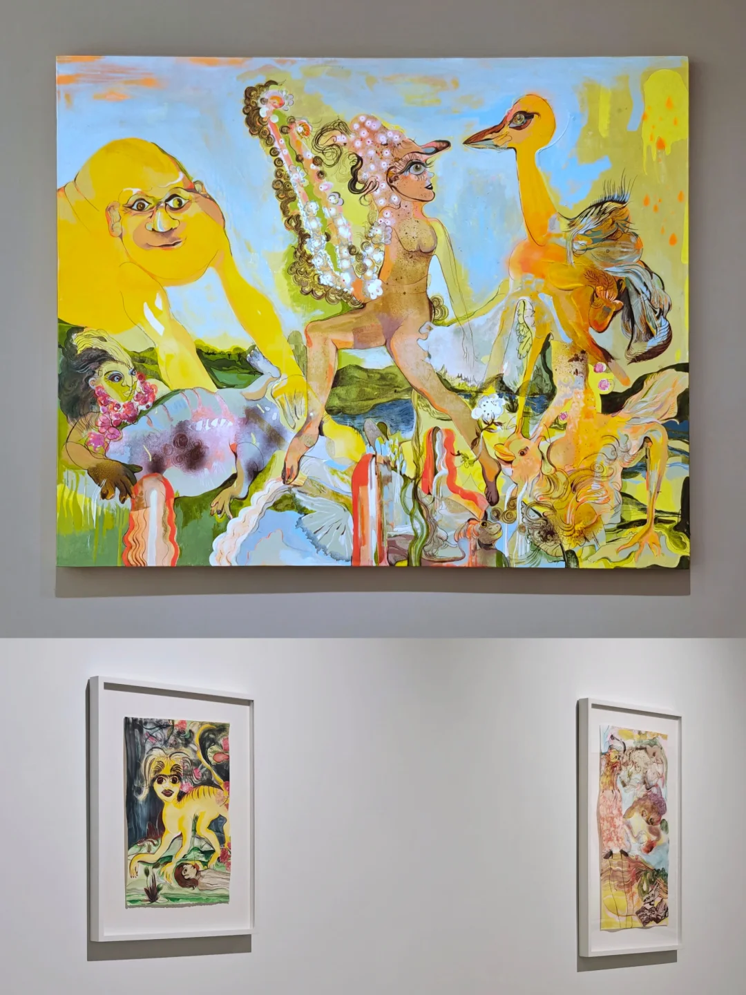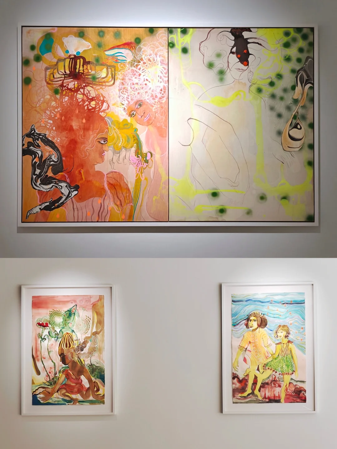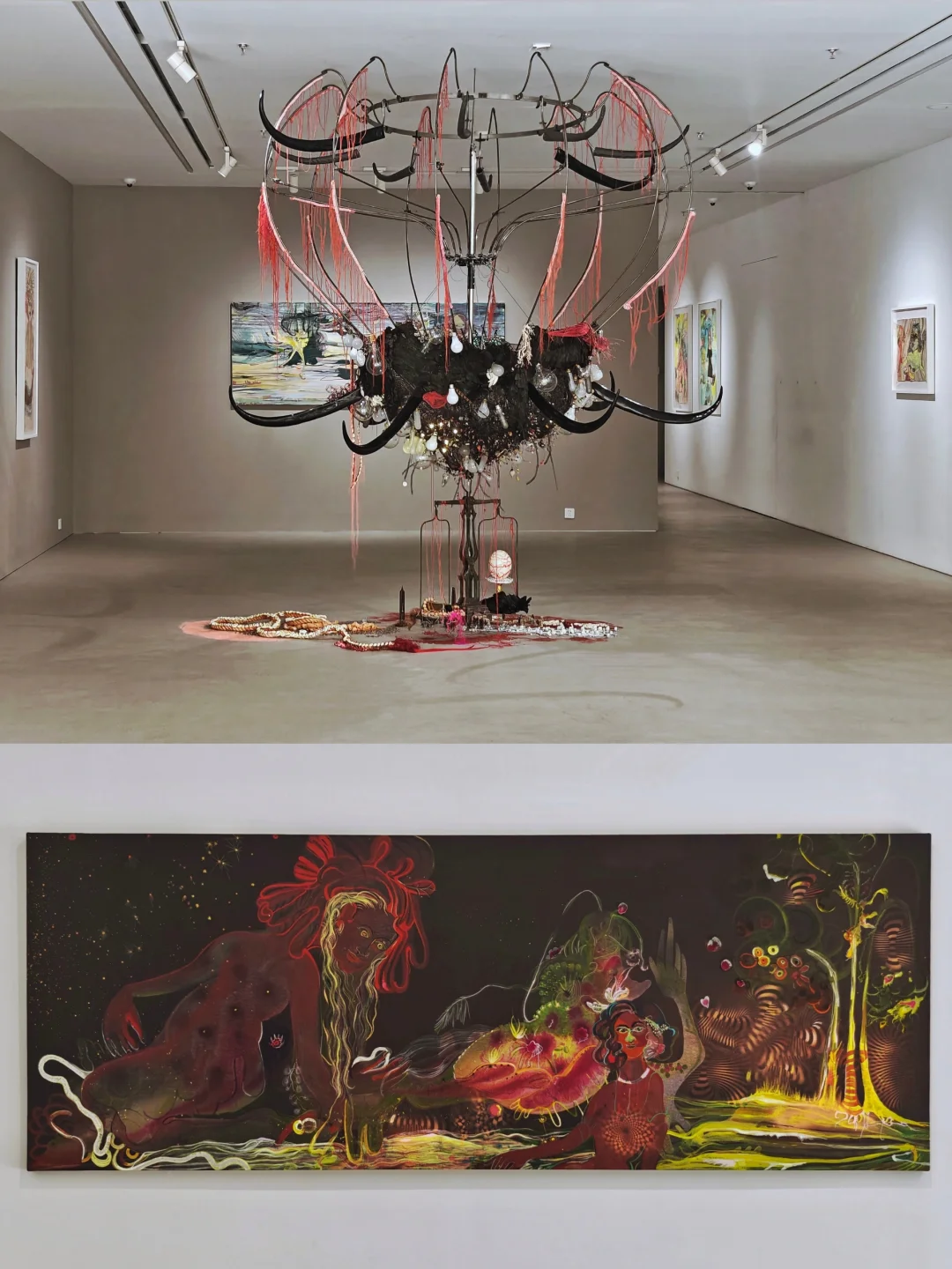 🖼️架上作品是一些怪诞的女性形象,结合了印度与全球神话意象。