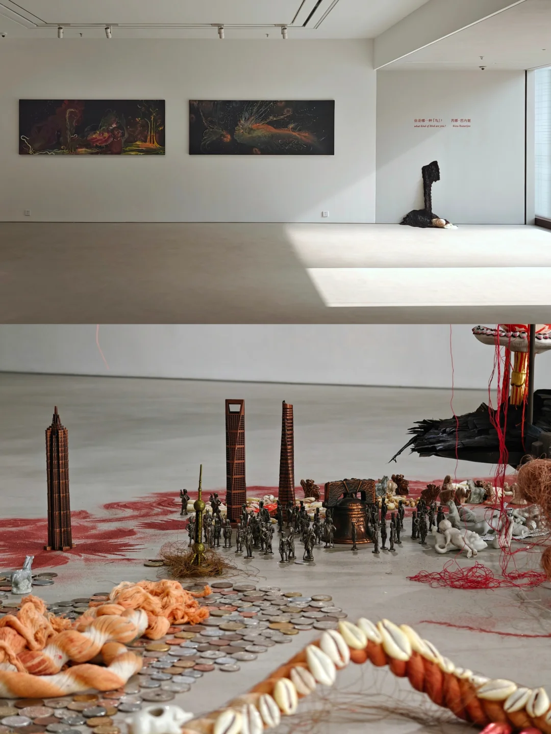 👉后殖民身份、女性主义、生态议题、全球化、消费主义、打破刻板印象……全都是当代艺术的热门选题,融合在一块儿了,算不算buff叠满[doge] 这个展让我联想到longlati最近正在办的黑人女性艺术家的展,颇有相似之处(之前po过,主页🔍)。总的来说没有什么太“新”的东西,但贫穷艺术味儿的装置虽然“复古”但拍照还是吸睛的,路过可以看看。