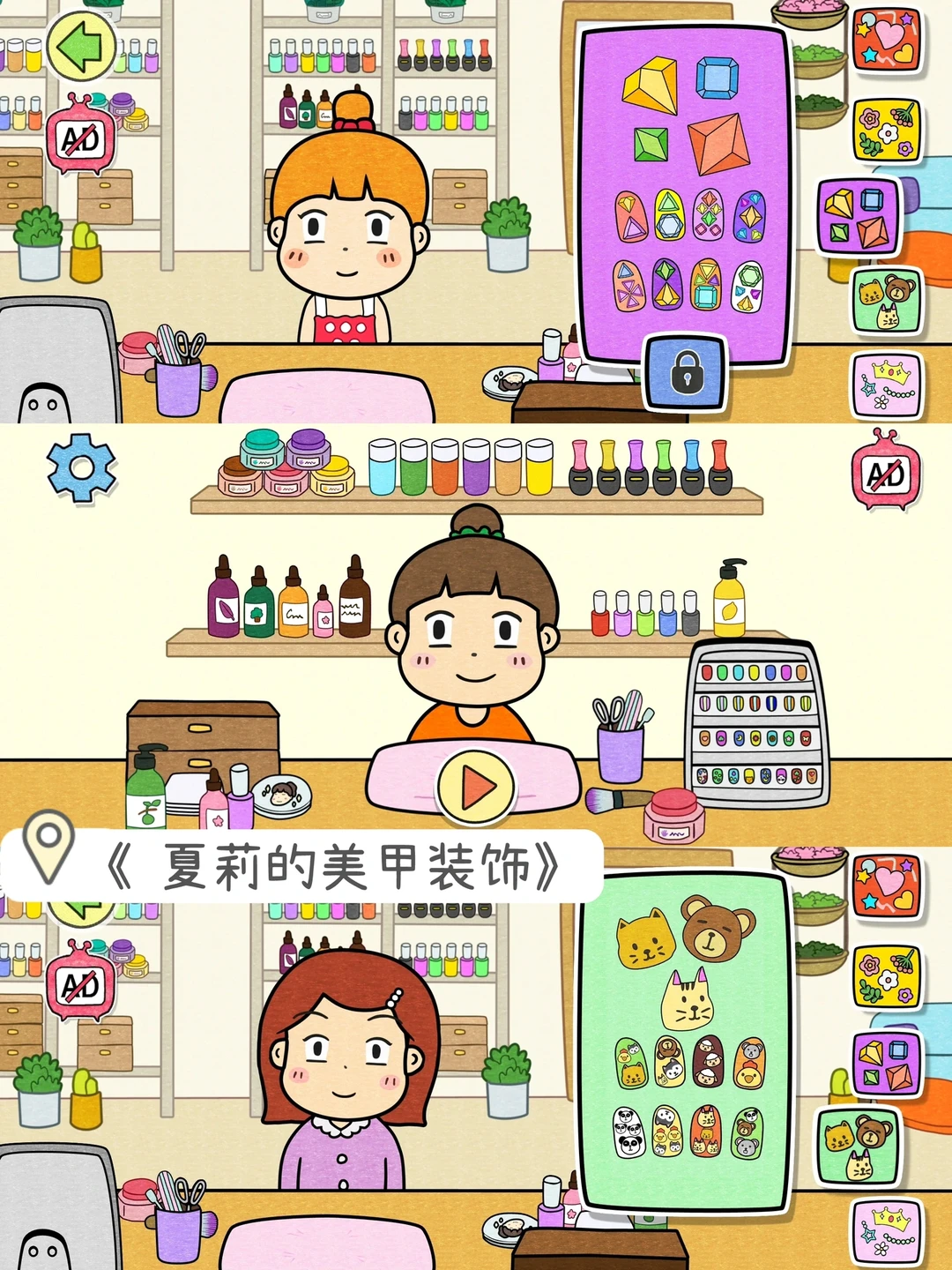 夏莉系列真的都很好玩!使用各色各样的指甲油💅🏻、可爱的贴纸和宝石把顾客的指甲都修饰的十分漂亮(*≧∪≦)