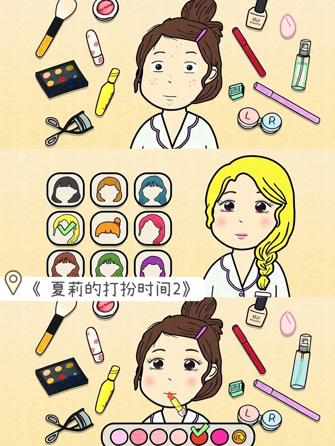 还是夏莉系列,给你的朋友画一个美美的妆容吧~先清洁皮肤再化妆,最后进行换装和头发的造型!