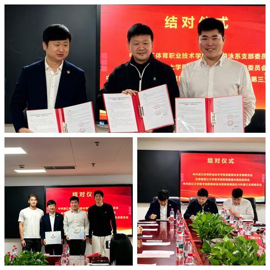 随后,双方在游泳馆三楼会议室开展本次结对共建交流......奥运冠军汪顺,奥运冠军徐嘉余......齐聚一堂,与邵医青年共话协作初心。」