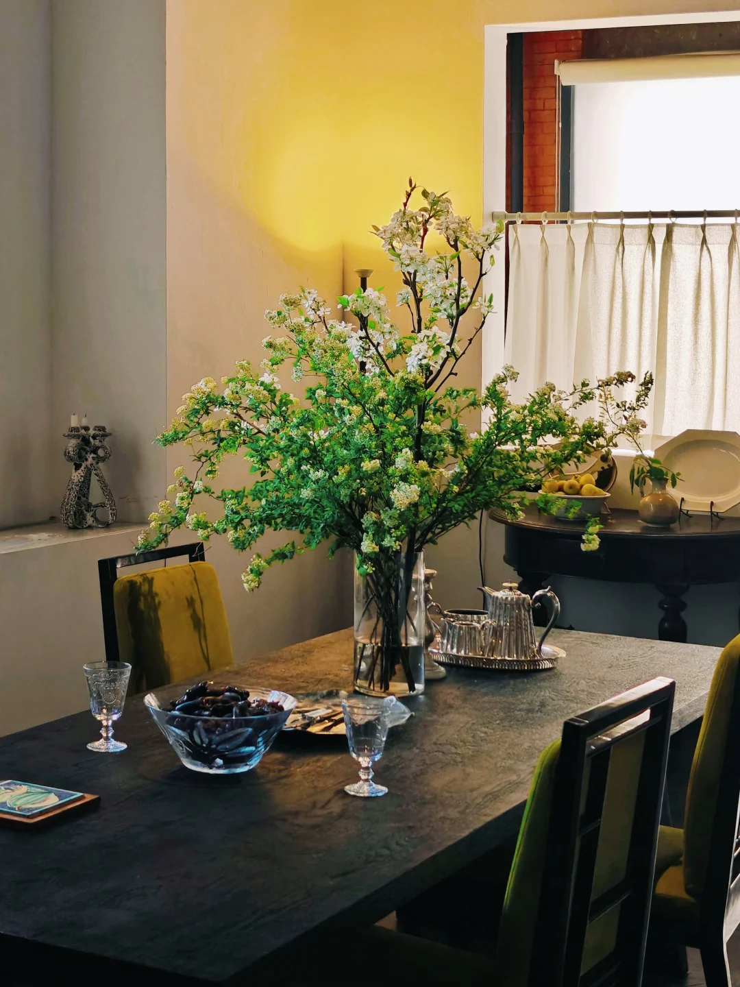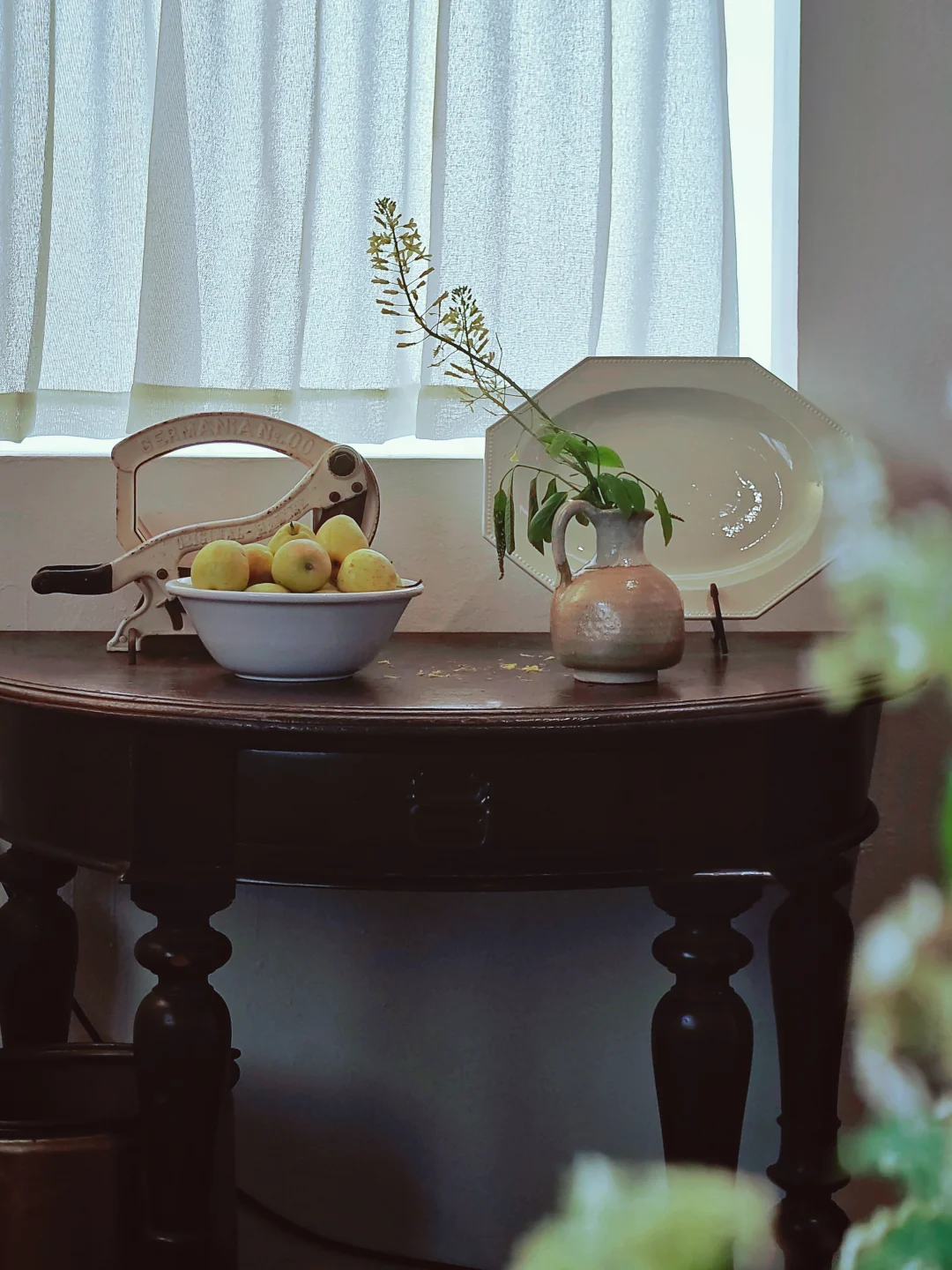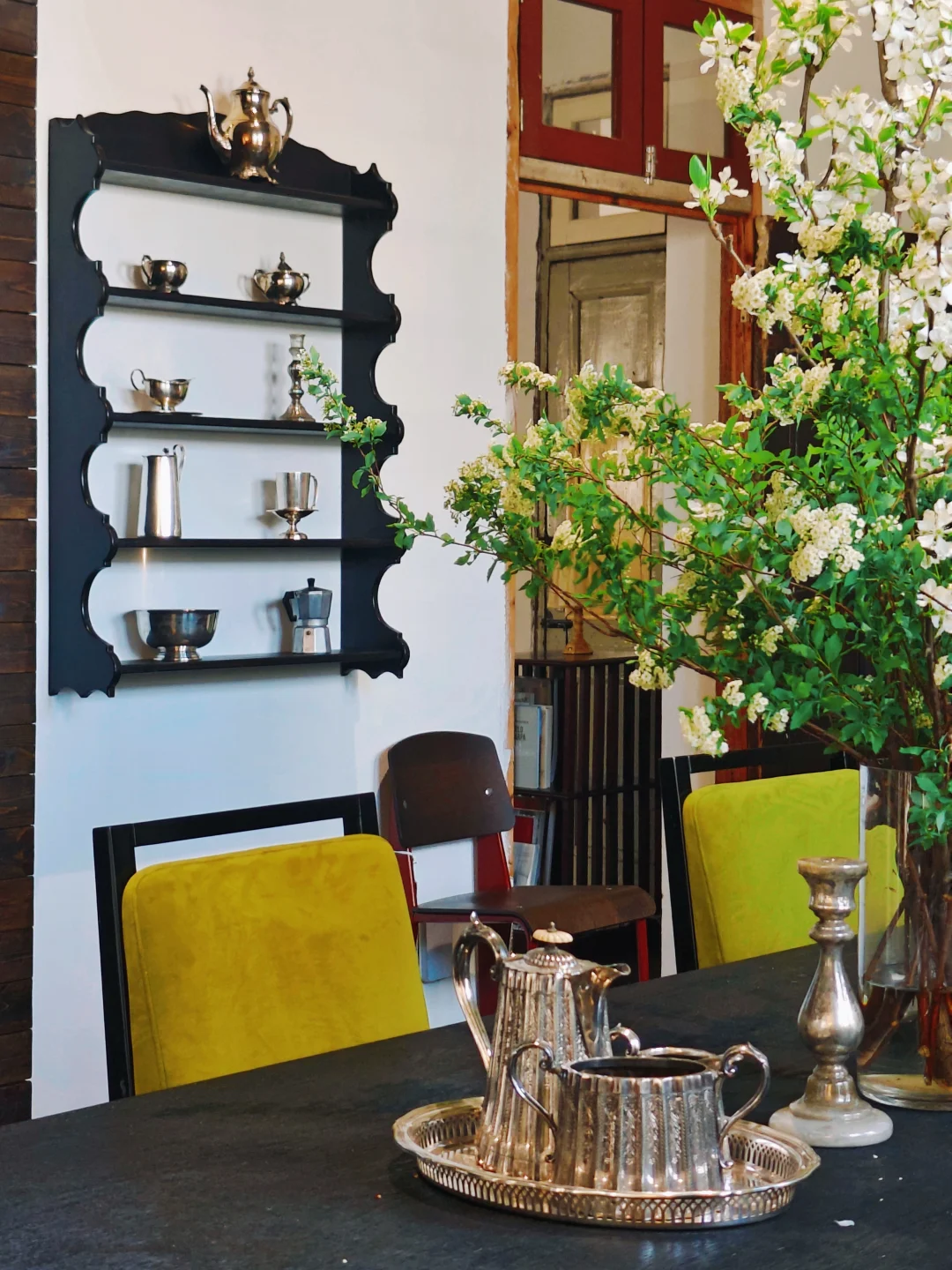 一间颇有南法情调的复古厨房,散落着刻着时光印记的银餐具