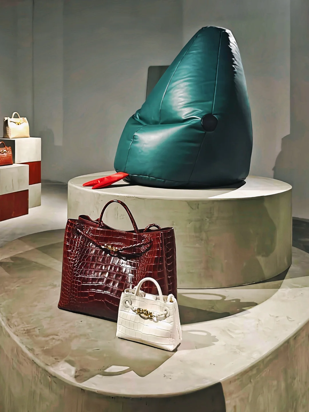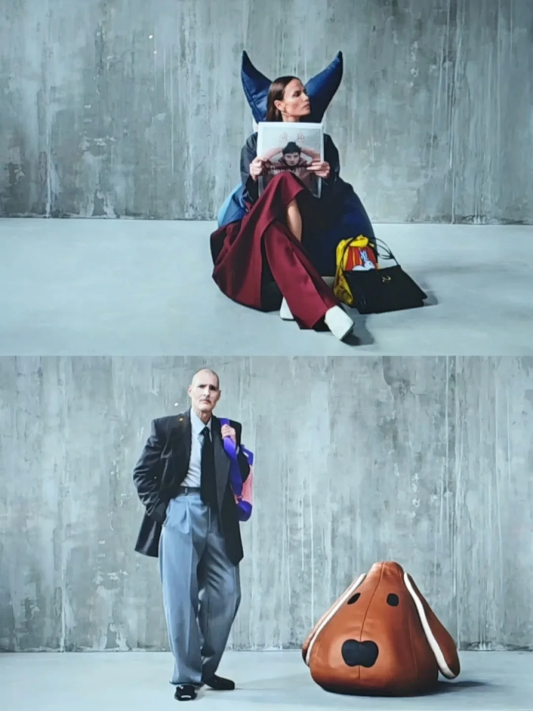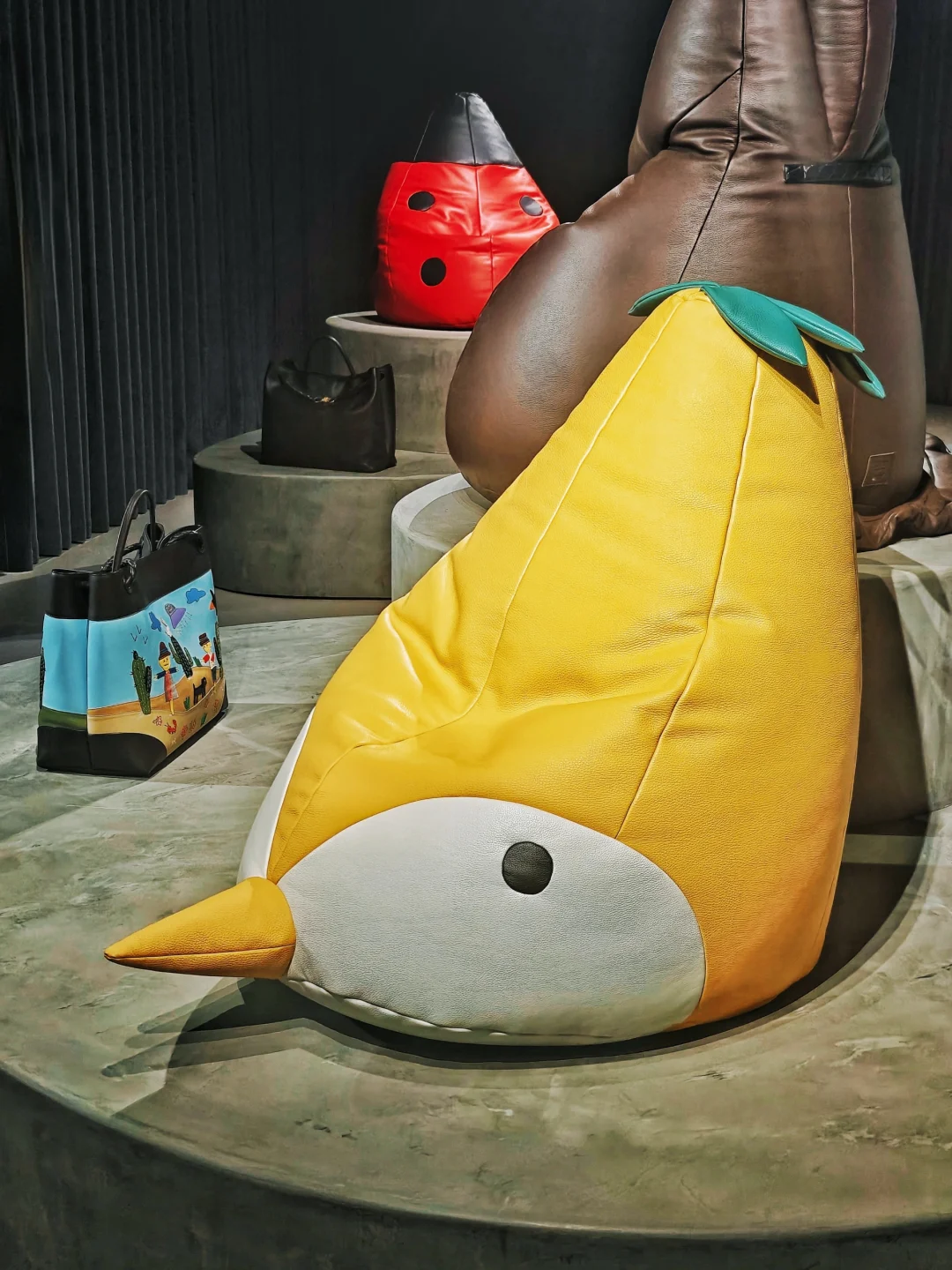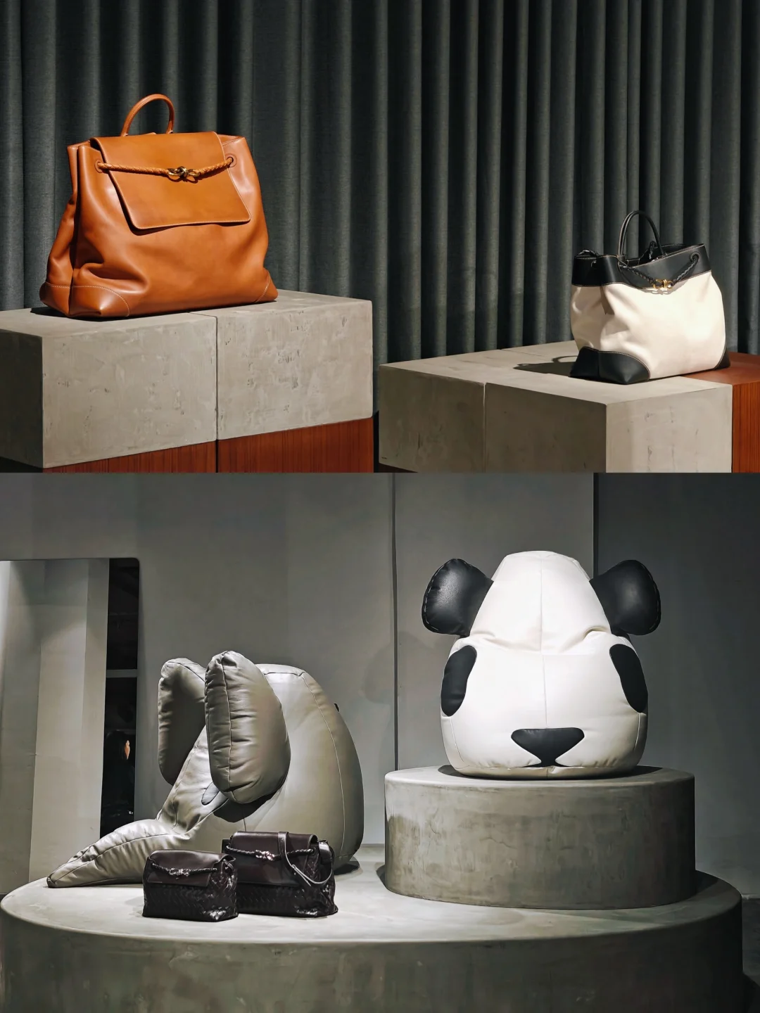 BV与意大利家具品牌Zanotta合作推出的限量系列,融合了本季秀场设计灵感“童年”。以其经典标志性“Sacco”豆袋沙发为灵感,设计出15种动物造型(如🐞🐴🐰🐼等)。沙发采用品牌标志性皮革工艺,配色包括BV绿、黑、红等,单价7,500至10,000美元。(现场工作人员介绍说大部分现场的已经预定出去,看来今年奢侈品消费又行了?好像最近有数据说创新高了耶[doge])