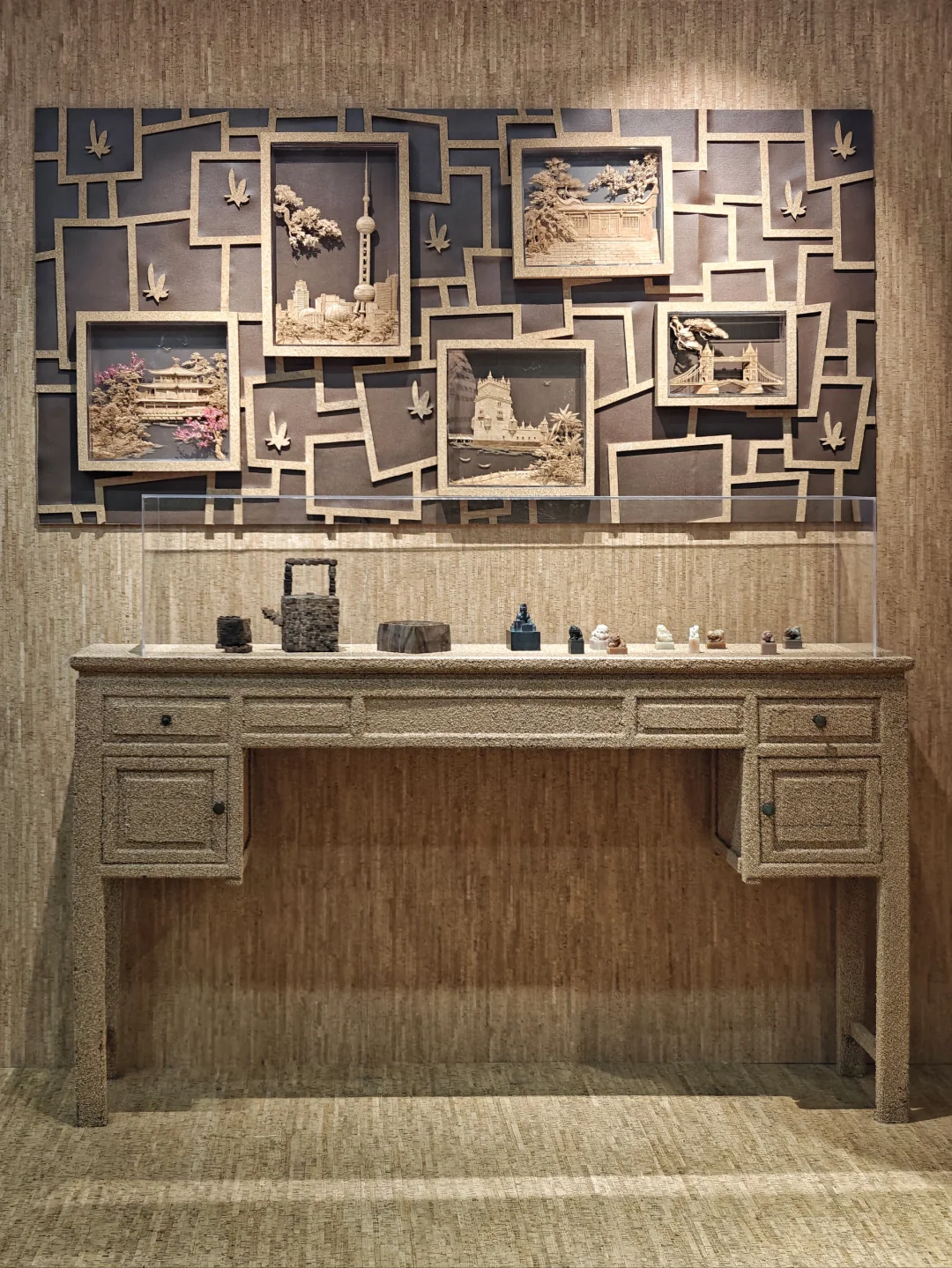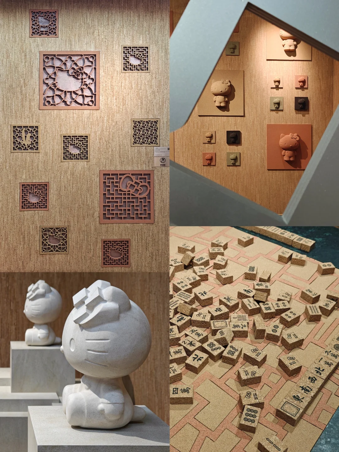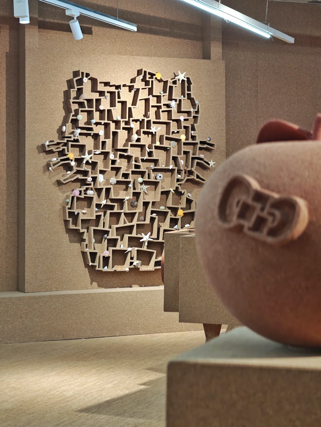 🐱这次合作展览的艺术家黄小眠的经历挺神奇的,童年很长一段时间在埃及度过,也从事过多种文艺事业。这一次的展品,既有结合了非遗技艺如竹编、脱胎漆器等,也有体现可持续发展理念的软木和可回收再利用的石材应用。