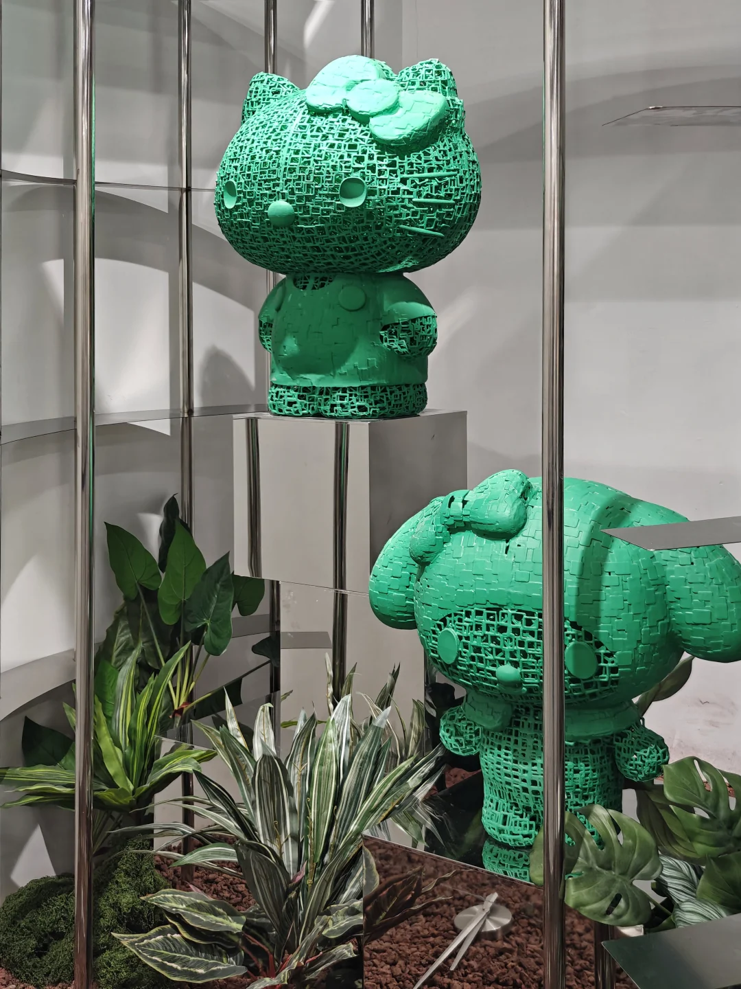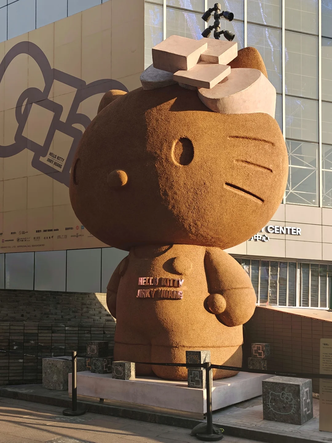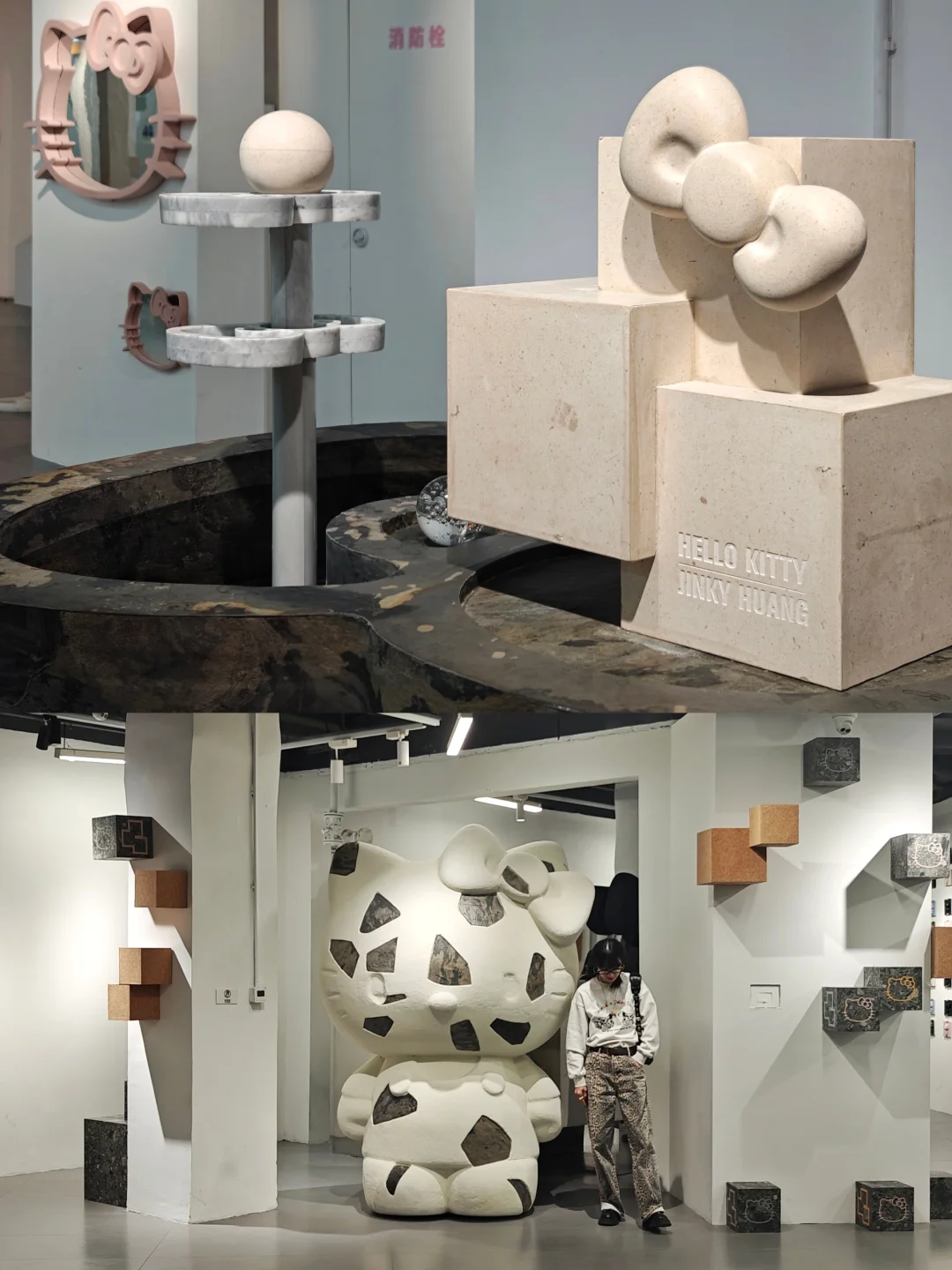 👉80后的身边总有那么几个Hello Kitty控吧?曾经见识过同学一屋子的Hello Kitty,几乎所有用品都是这只🐱的衍生品。她也可以算是🐱中顶流了吧(不对其实她不是🐱……)这些年来爆火的IP层出不穷,似乎她也有点过气了。不过三丽鸥的底子还是在的,庞大的粉丝基础无论如何也能撑起50周年的排面,这一次的展览也算是挺大手笔了。远远地就在商场门口看到这次展览形象的巨大雕塑。