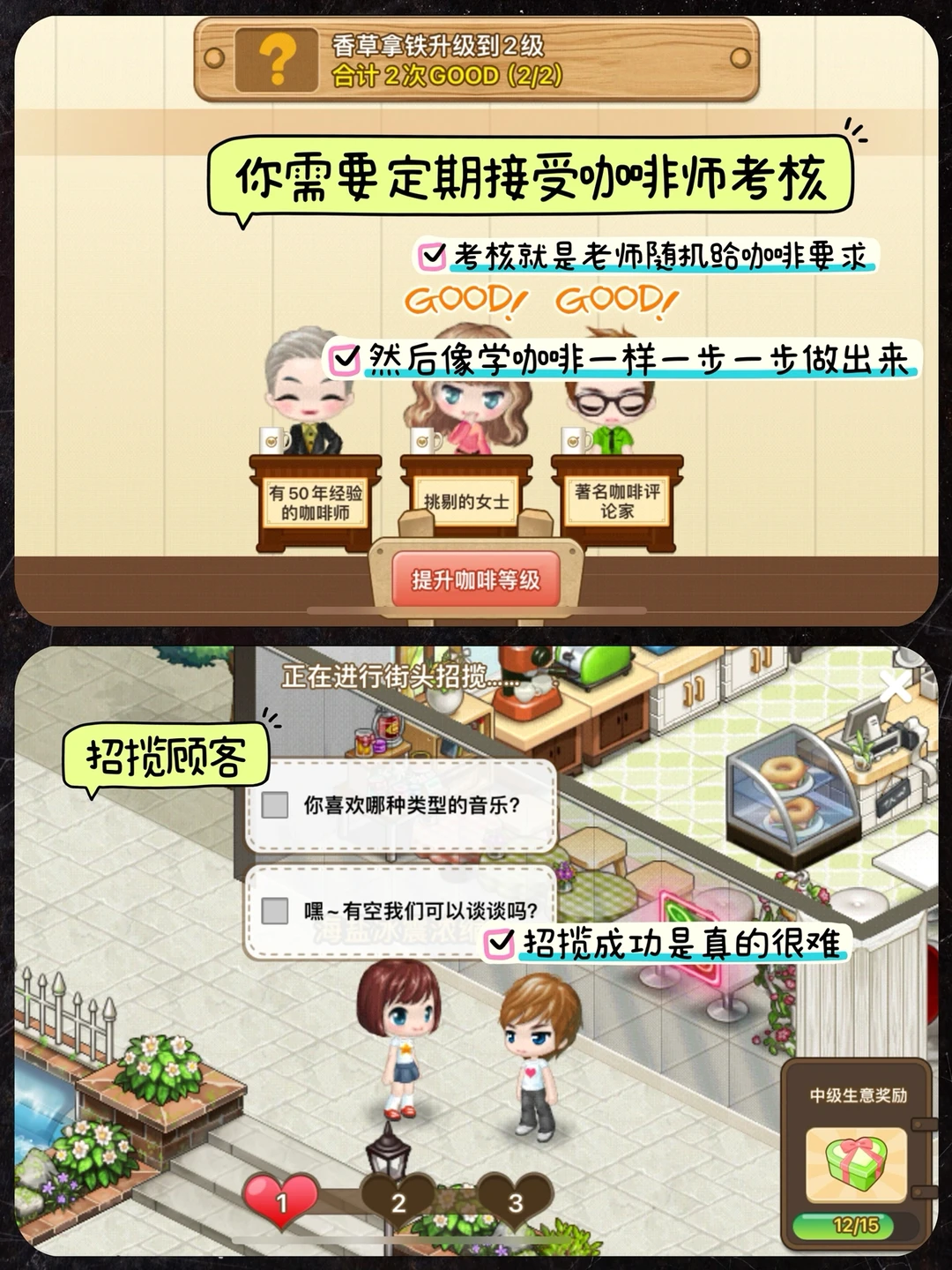 🟡《寻宝物语:咖啡之恋》 🟡iOS & Android ✔️ 🟡模拟经营|咖啡|治愈|养成 - 不知道有没有uu过去玩过这款咖啡厅模拟游戏,之前的名字是迷你咖啡厅。关服了现在改了名字又重新上线了。近期都在玩,非常上瘾。 - 🟡特点: ▫️做咖啡:加冰块、萃取咖啡液、打奶、加奶泡、加糖浆、加可可碎片等等,就像现实中做咖啡一样一步步来 这是我最喜欢的步骤 在游戏里学做咖啡🤣 ▫️咖啡等级考核 ▫️加好友 拜访好友 互相帮助 朋友联机模拟 ▫️画风很古早 好像回到了过去 ▫️家居超级好看 打造你的梦幻咖啡屋 🔴需要耐心 长期坚持玩下去 🔖超级真实的咖啡厅游戏 喜欢玩模拟经营养成的千万不要错过🔖