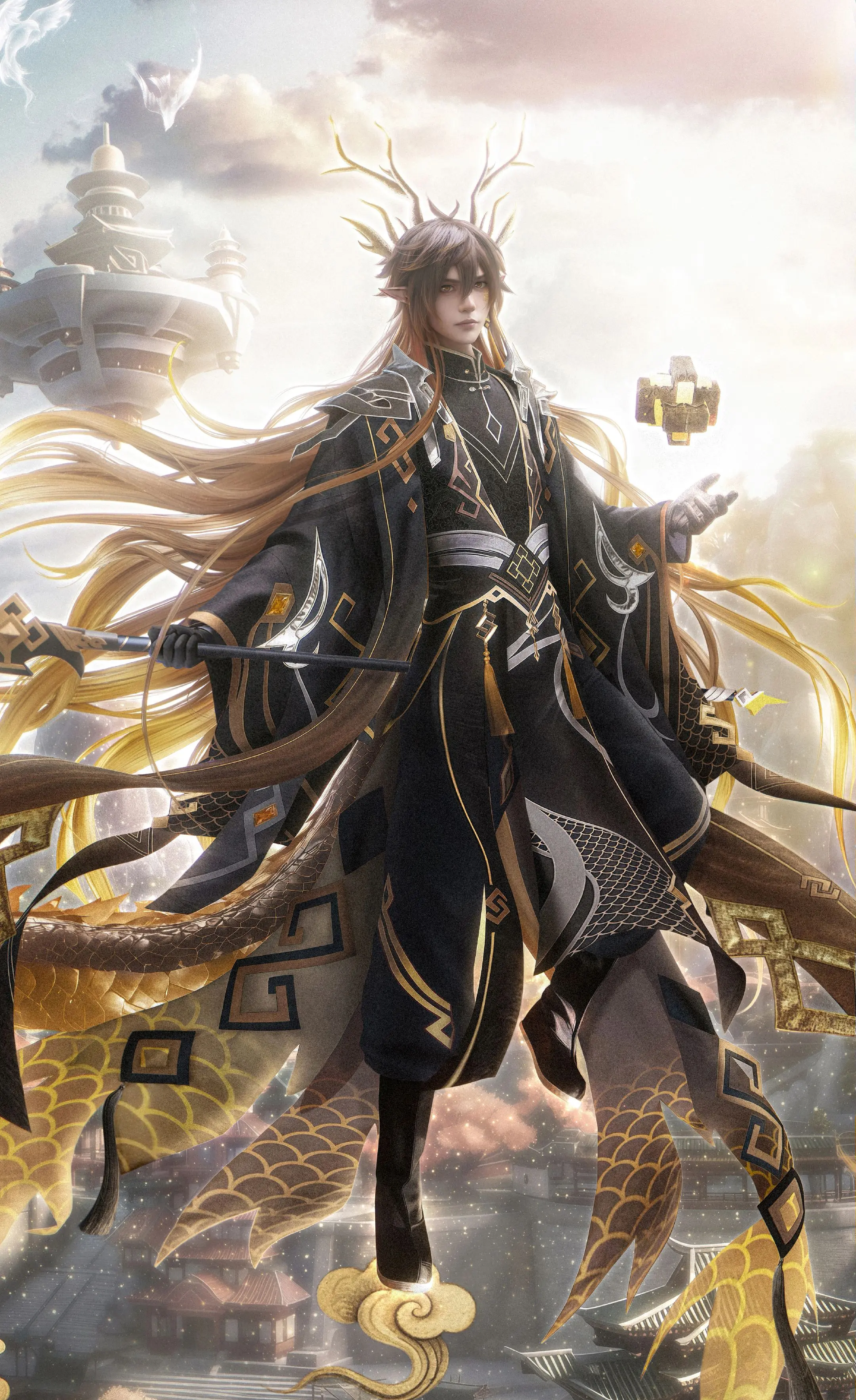 一张图可以截成四张成片。钟离cos 钟离山海经 后期展示 原神 图片纯享版