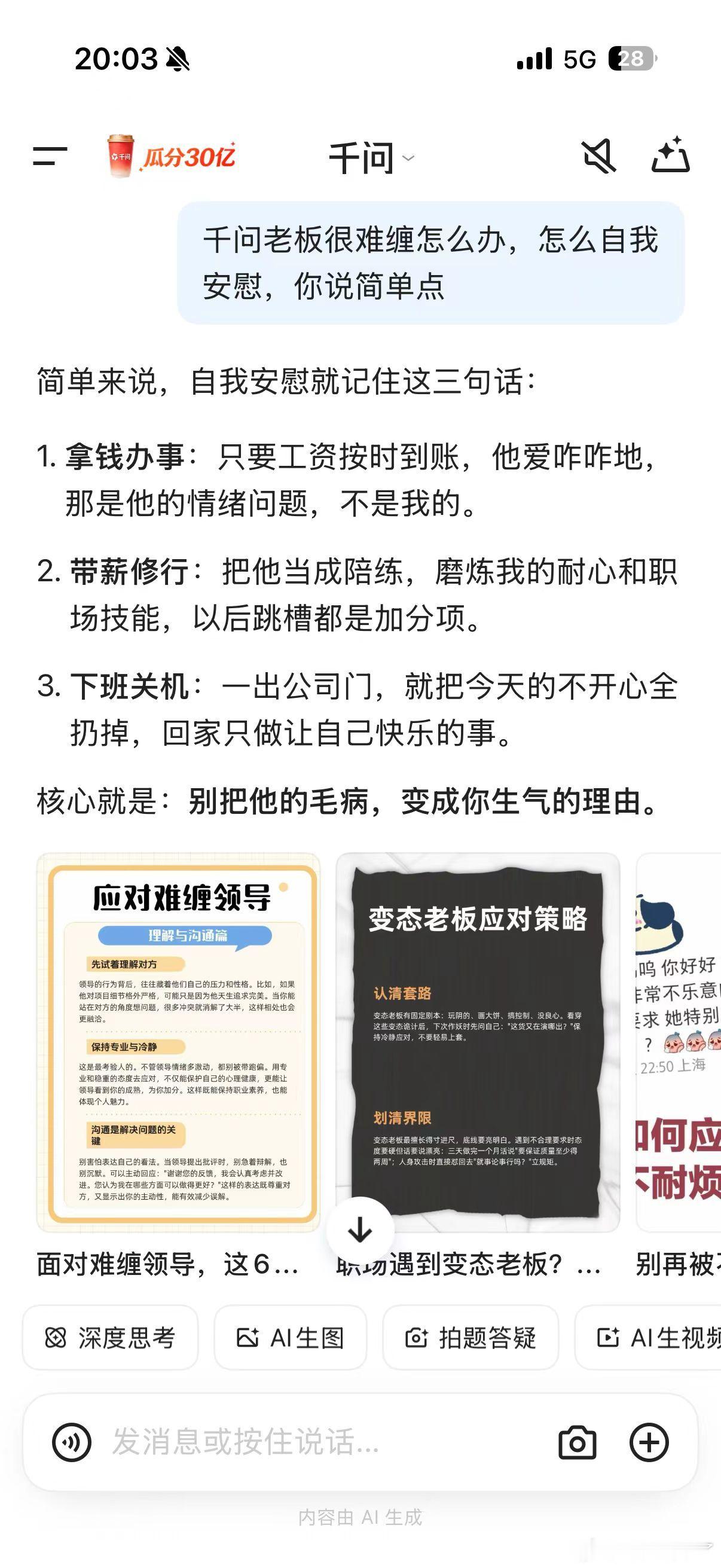 你的千问是什么人格千问宠粉真是没话说!奶茶免单卡延到28号,薅羊毛的快乐能从春节一直持续到月底~而且网友们还解锁了千问的新玩法:原来它真的有不同人格!有的回答超严谨,走专业路线;有的却超会整活,冷笑话、趣味互动说来就来~评论区全是晒回答、聊攻略的,解锁千问隐藏性格成了全网一起找乐子!原来千问的回复是看人的