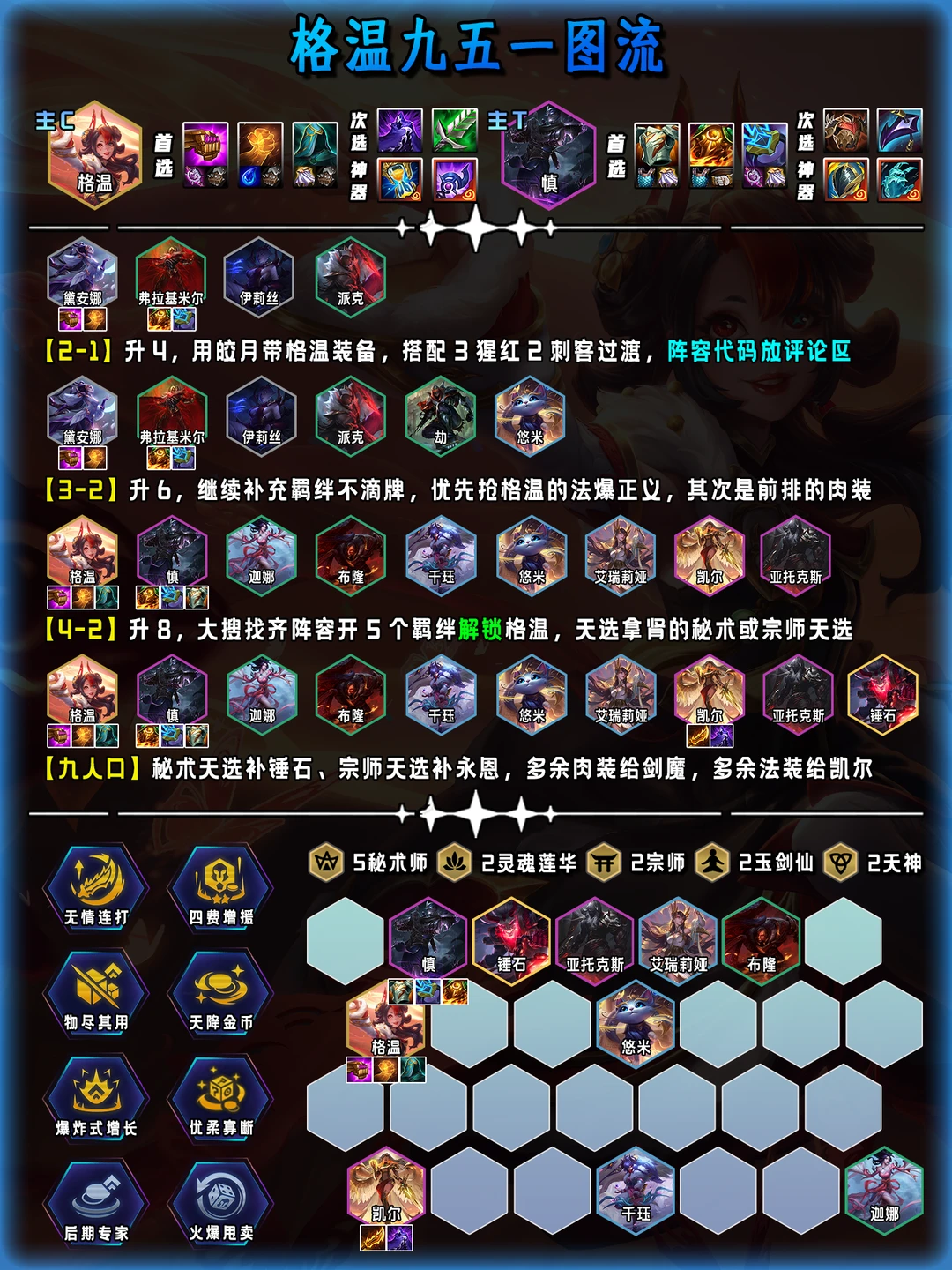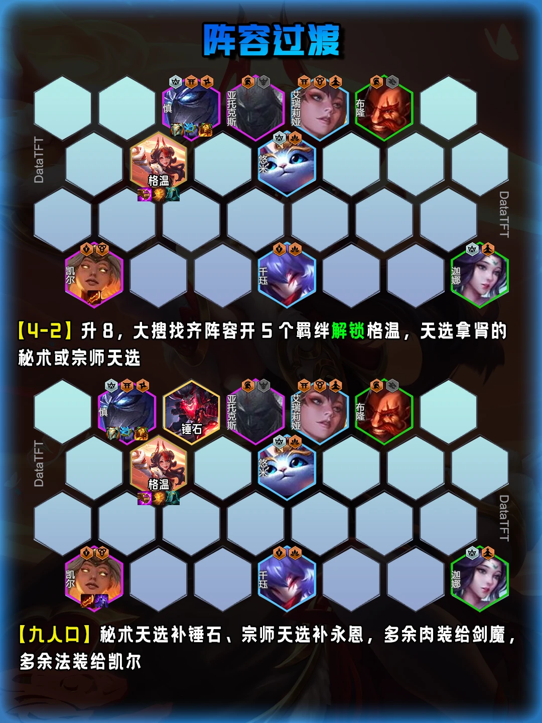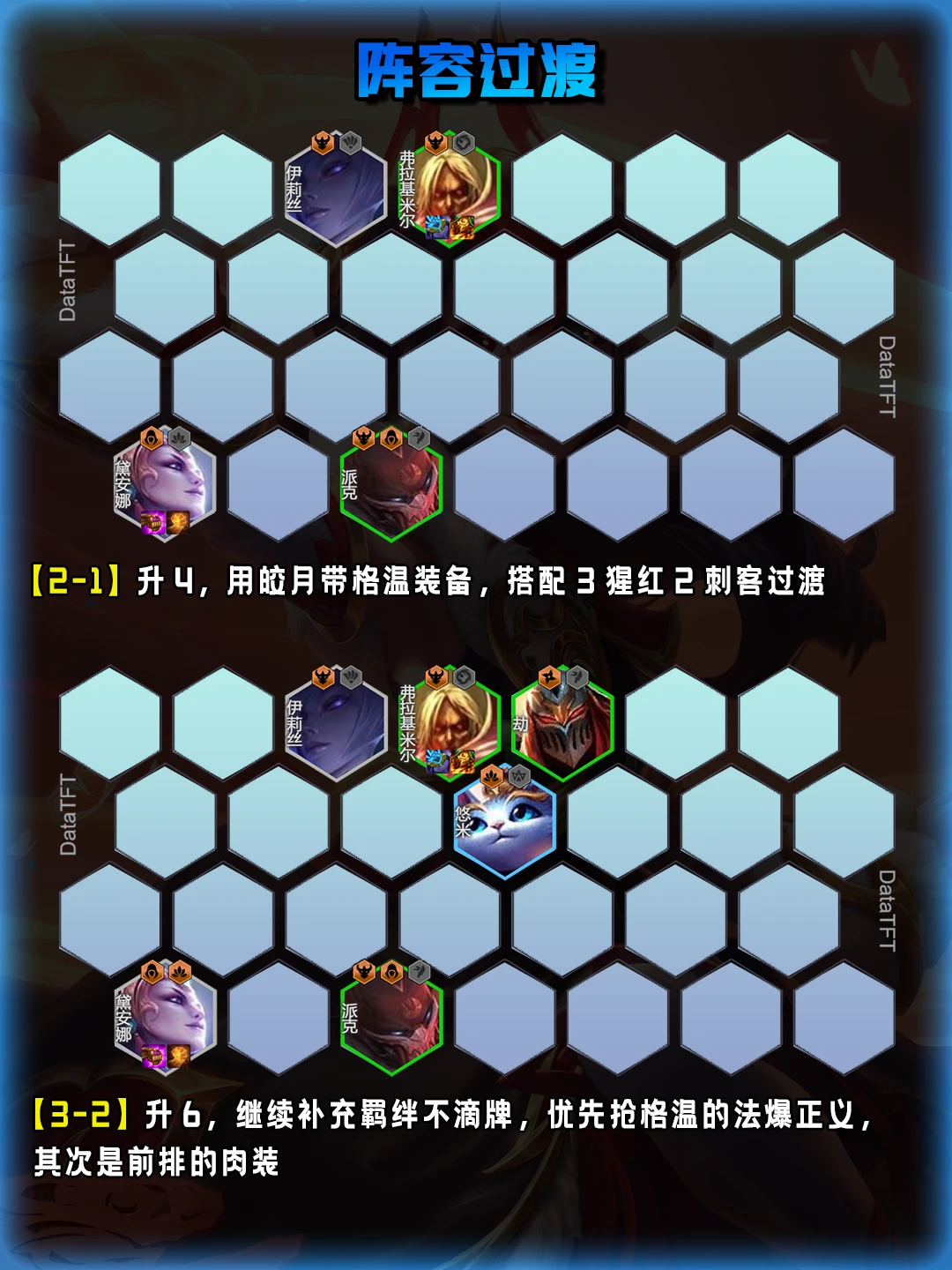 ◽️2-1升4:用皎月带格温装备,搭配3猩红2刺客过渡,稳血不慌