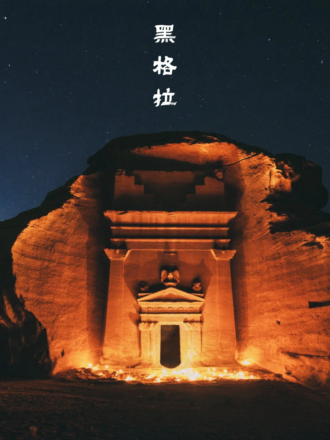 ✅ 黑格拉:沙特首个世遗,纳巴泰王国遗址,日落时绝美,非常推荐沉浸式夜游,好像走进了《一千零一夜》。