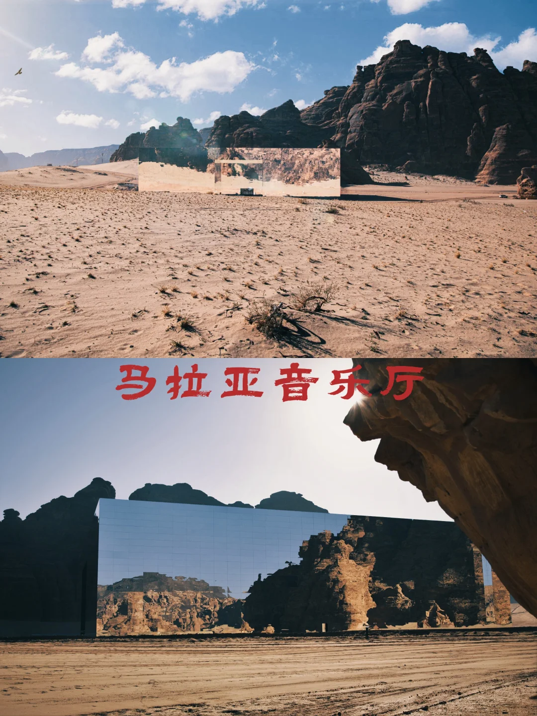✅ 马拉亚音乐厅:真.值得打卡的网红机位。吉尼斯认证的世界最大镜面建筑,一半红沙,一半蓝天。建议早上去,要提前预约。