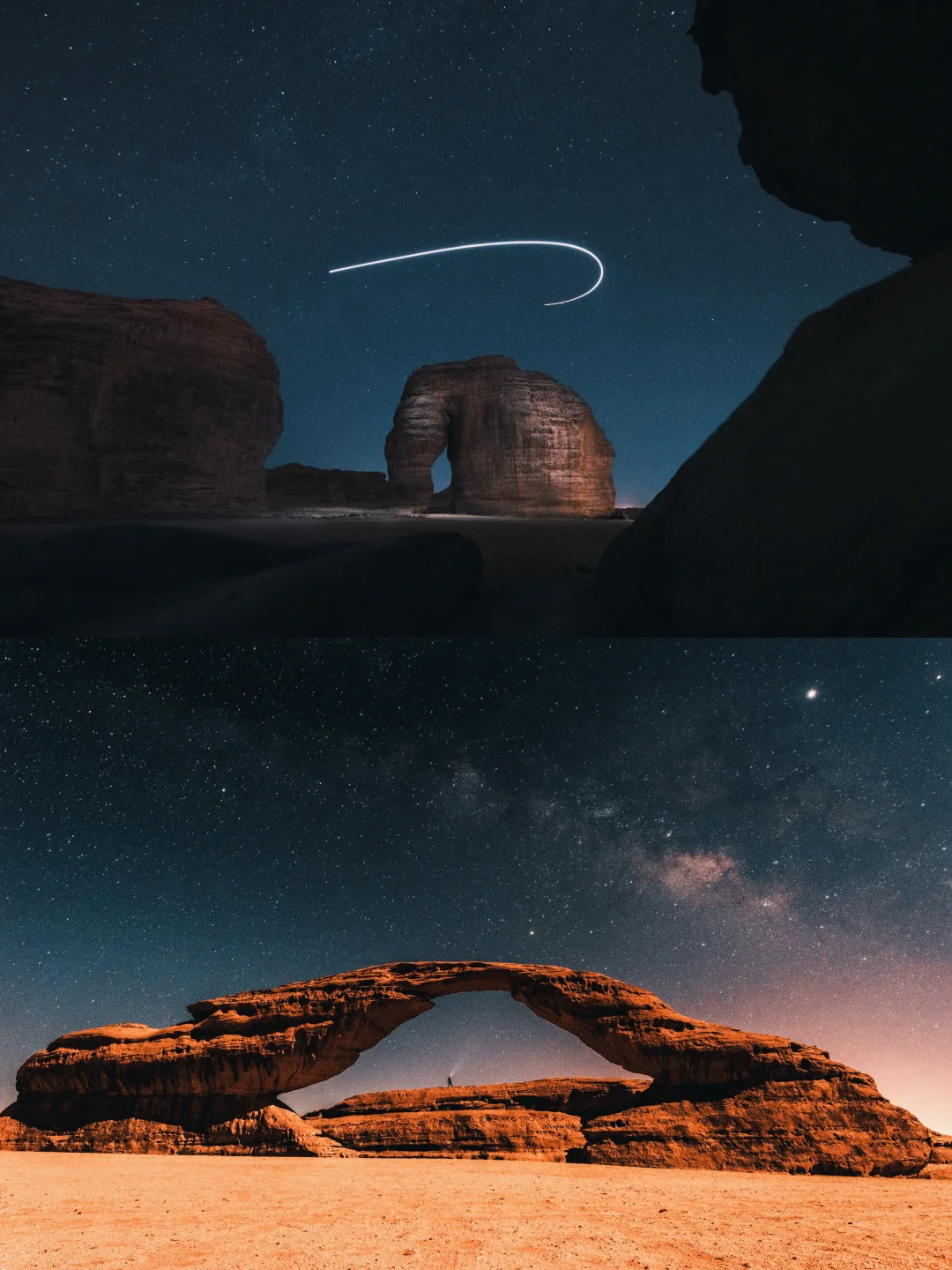✅ 距埃尔奥拉市区约 1 小时车程,地处偏远的沙漠腹地,无城市光污染,巨型岩柱直插天际,是埃尔奥拉顶级观星地,