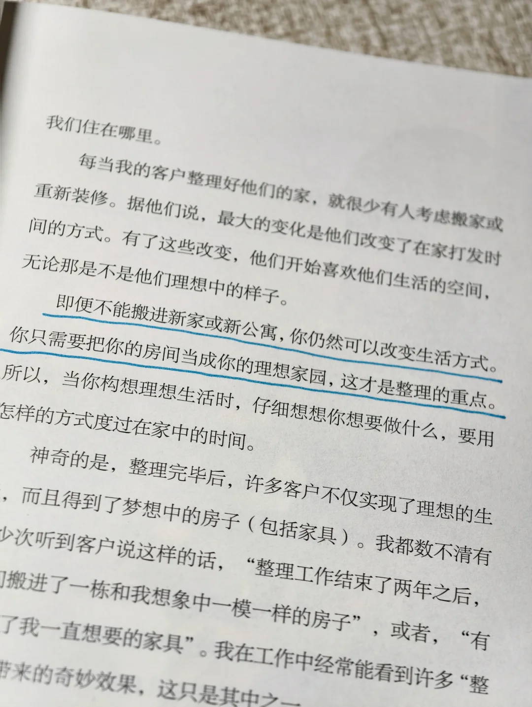 整理带给我们的,除了让生活环境变得更加井然有序,更会让你在这个过程中学会悦纳自己。筛选物品的过程就是反复问自己什么能带给你快乐的过程,慢慢地,你就会知道自己最在意的是什么。