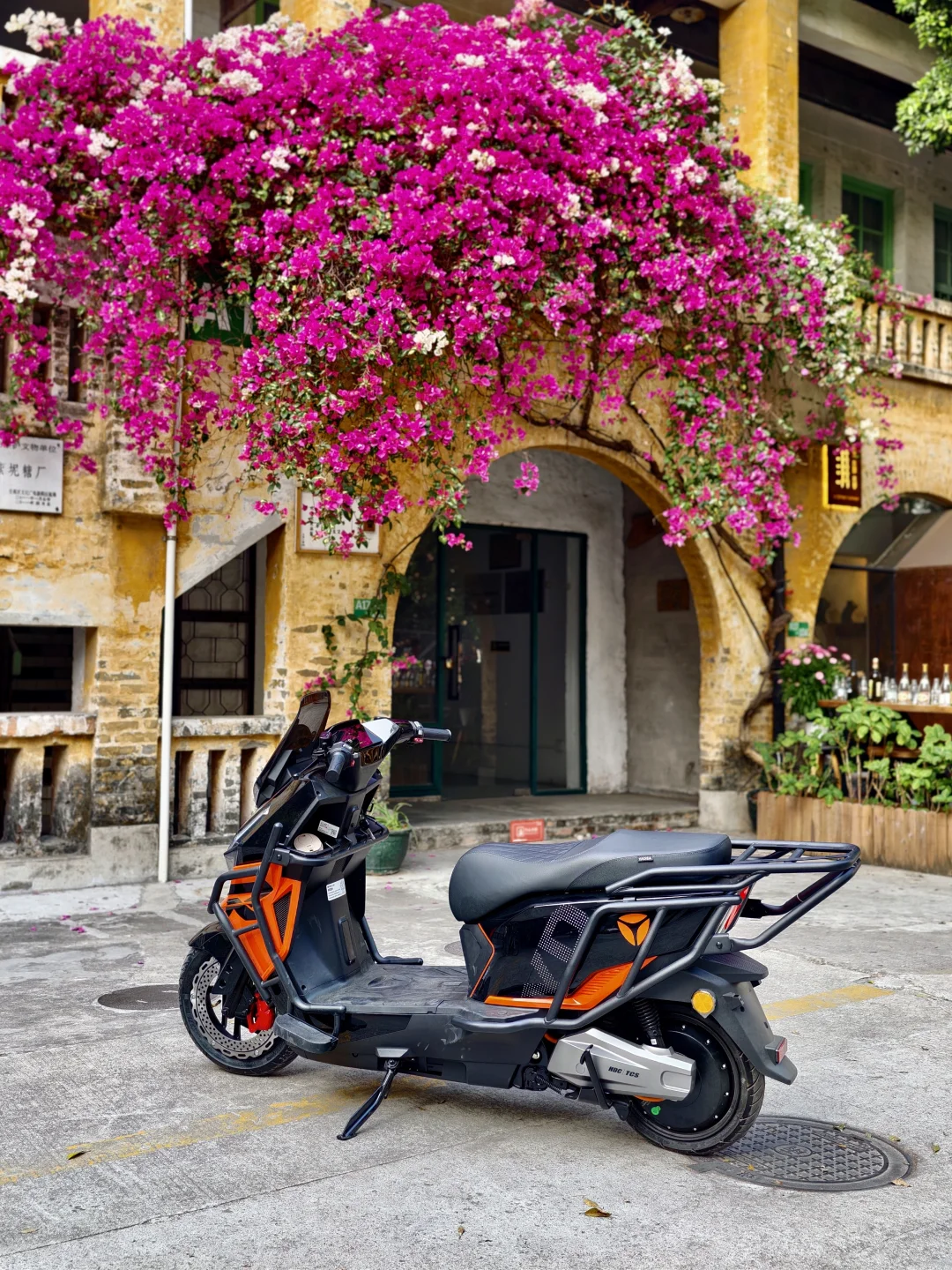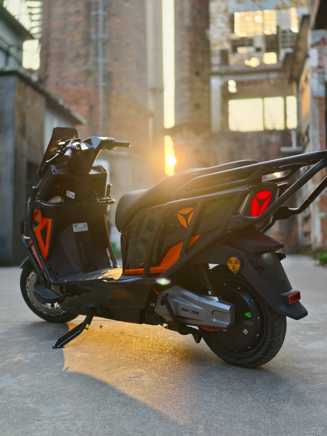 搭载3000W超功率电机,起步又快又稳,在城市里穿梭特别带感。电池仓够大,续航很顶,日常通勤再也不用天天想着充电。最让我喜欢的是那个25管加粗越野护杠,不仅能防撞,还能当载物架用,平时挂个背包、买菜什么的超级方便,实用和帅气这次全占了!