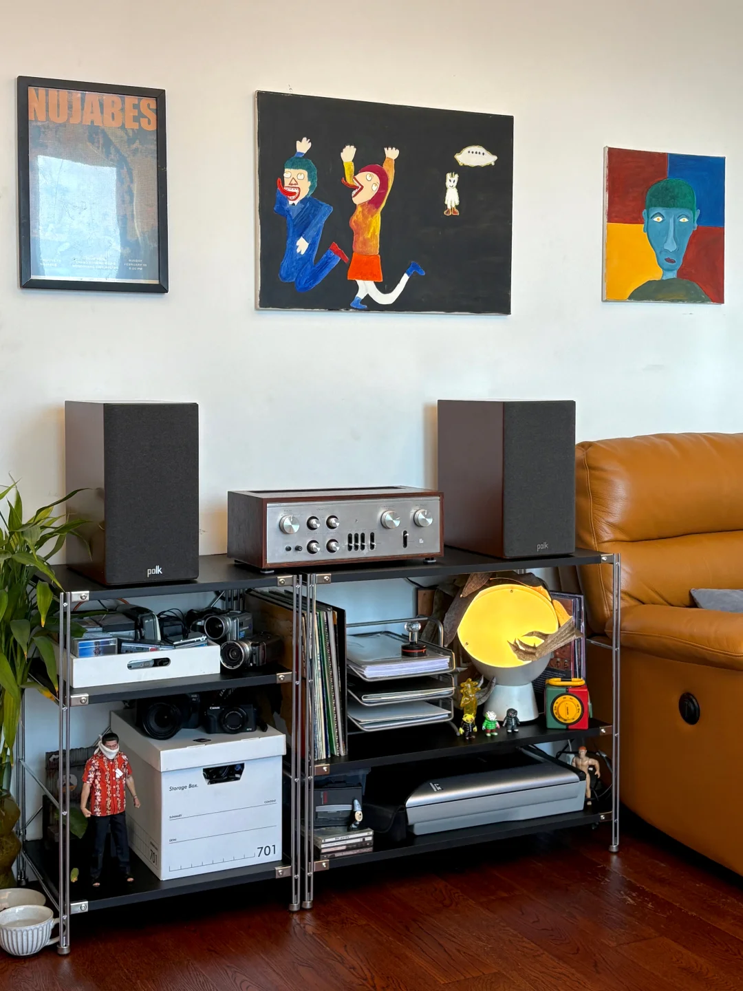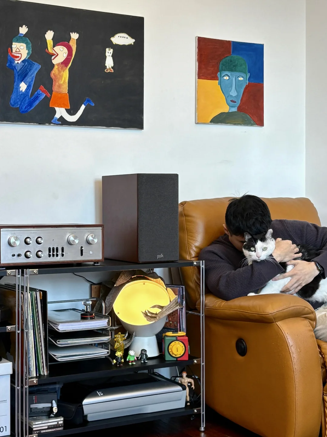 年前家里大扫除,工作间的物品全部规整,除了柜子其他都是旧东西,星星重新摆放之后看起来有了新感觉。 拍照的时候fito总是喜欢跑走,小黑就比较配合。 两幅油画都是星星自己画的,右侧正方形那一幅是我们刚认识时送我的礼物,正好挂在她送我的单人沙发上。 2026,新年新气象。