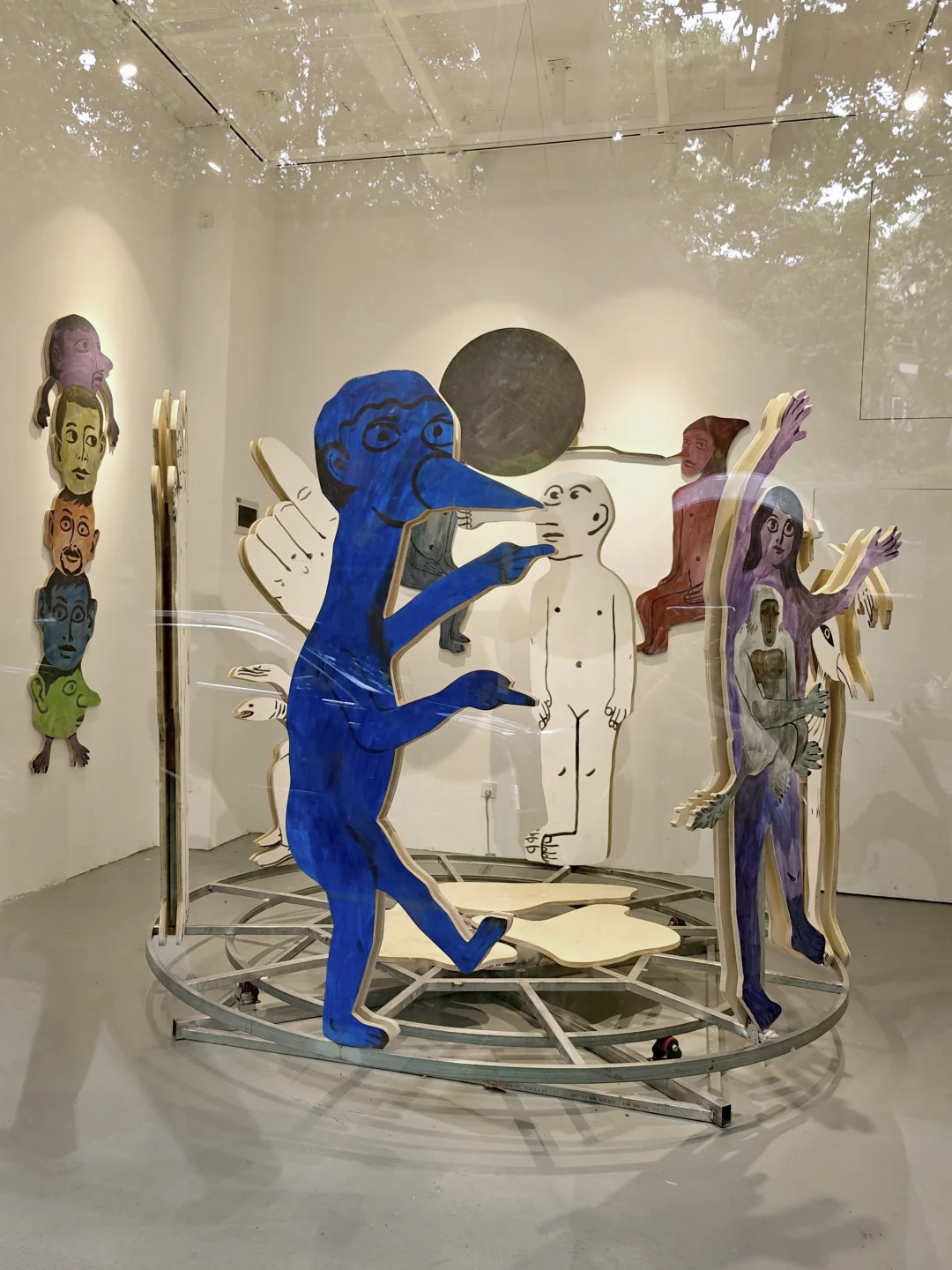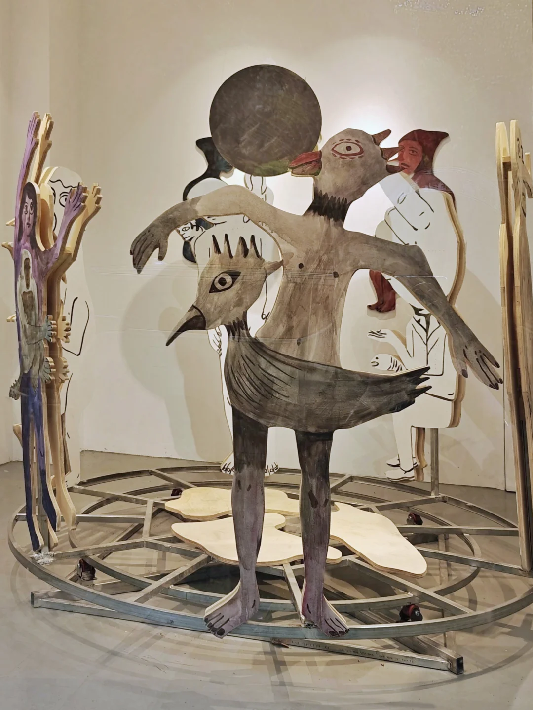 👉中心的旋转装置像是旋转木马又有点像星球运转,各种奇奇怪怪的拼接人形生物构成了一个怪诞又有些幽默的异时空小世界。