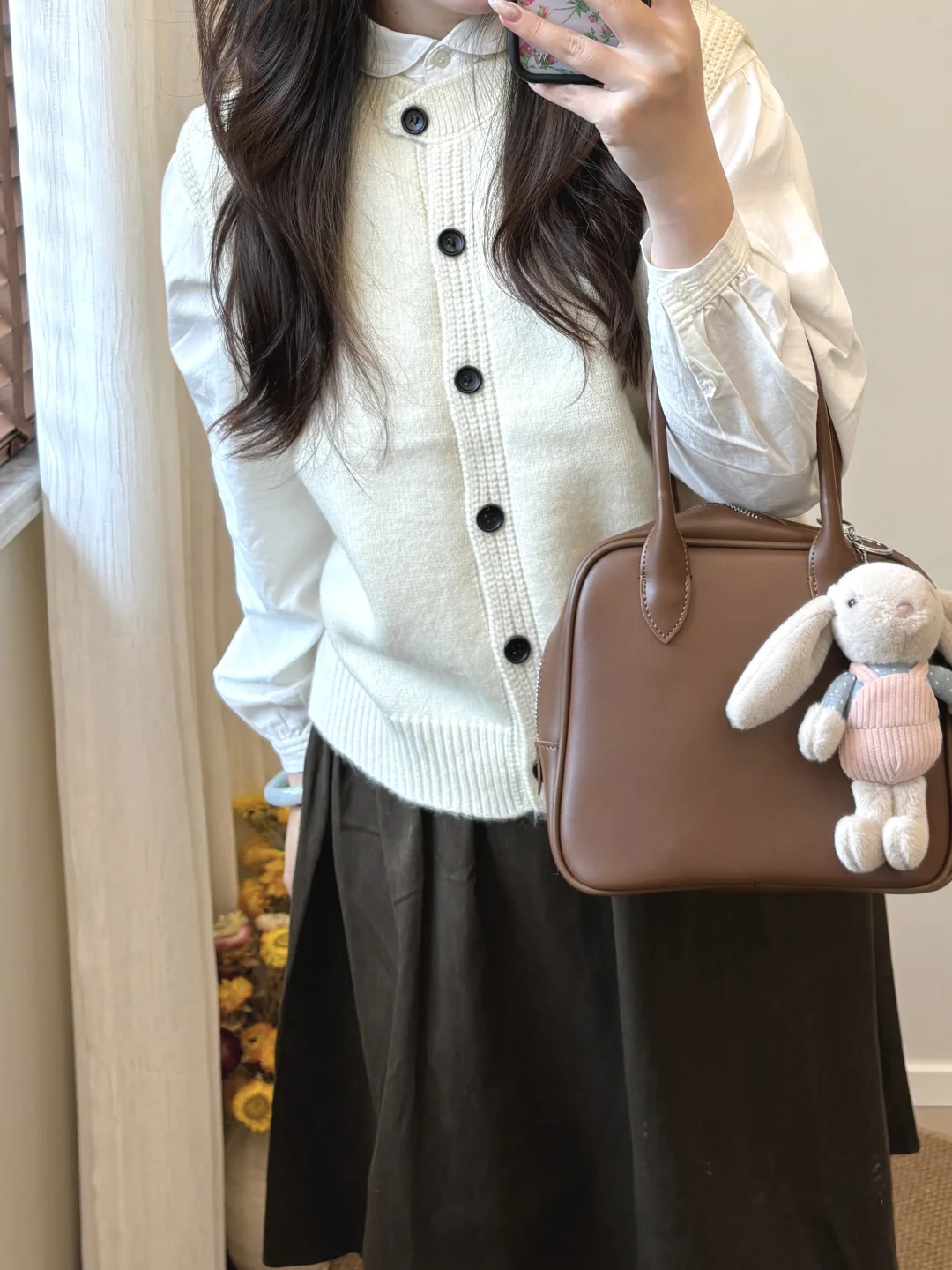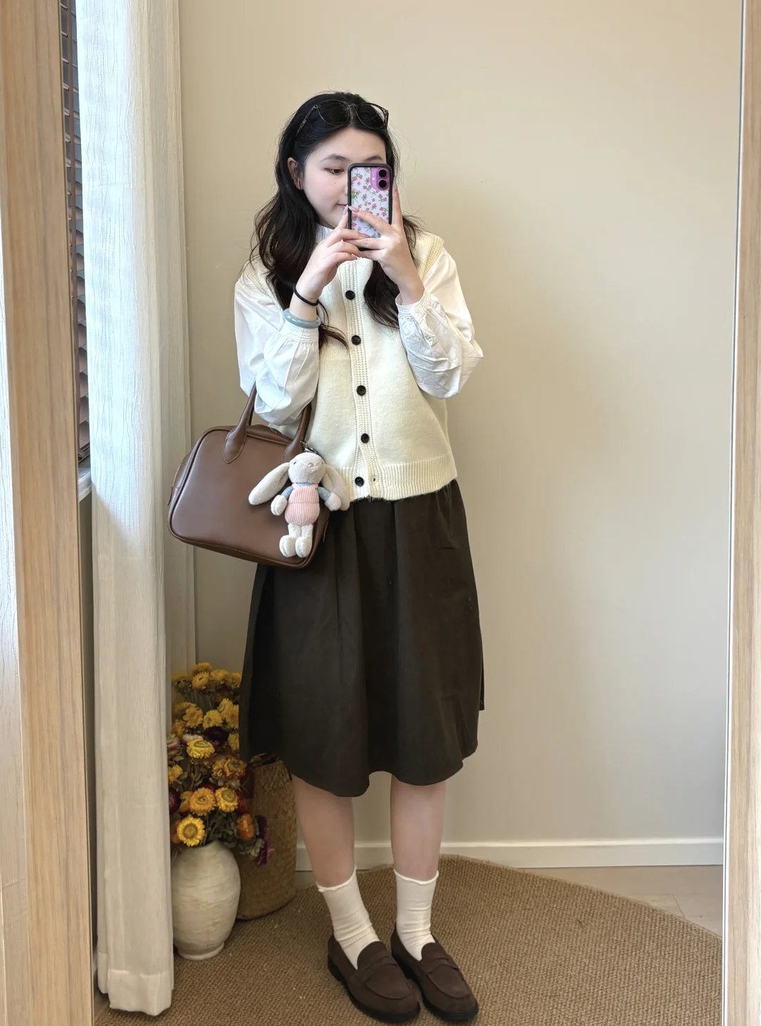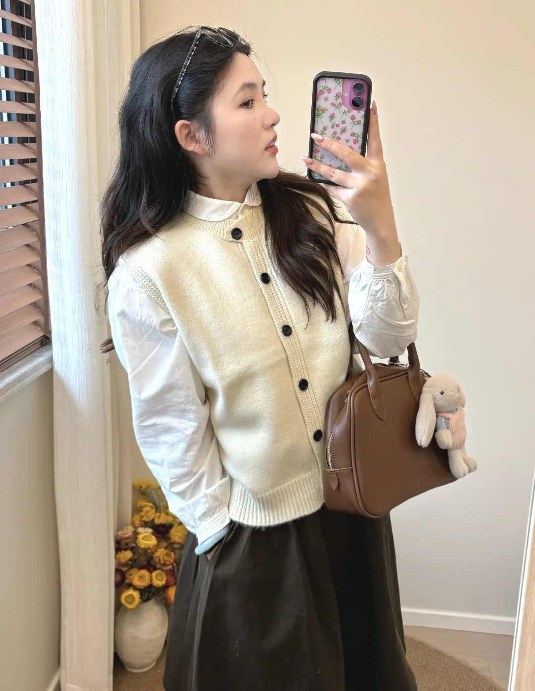 娃娃领衬衫 毛衣马甲 马甲搭配 初春穿搭 衬衫叠穿 白衬衫穿搭 开始期待春天的穿搭了 期待春天穿搭 小个子穿搭