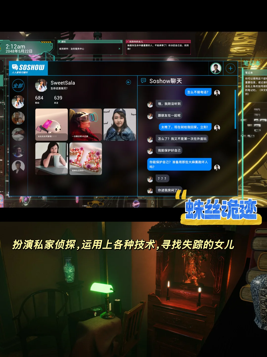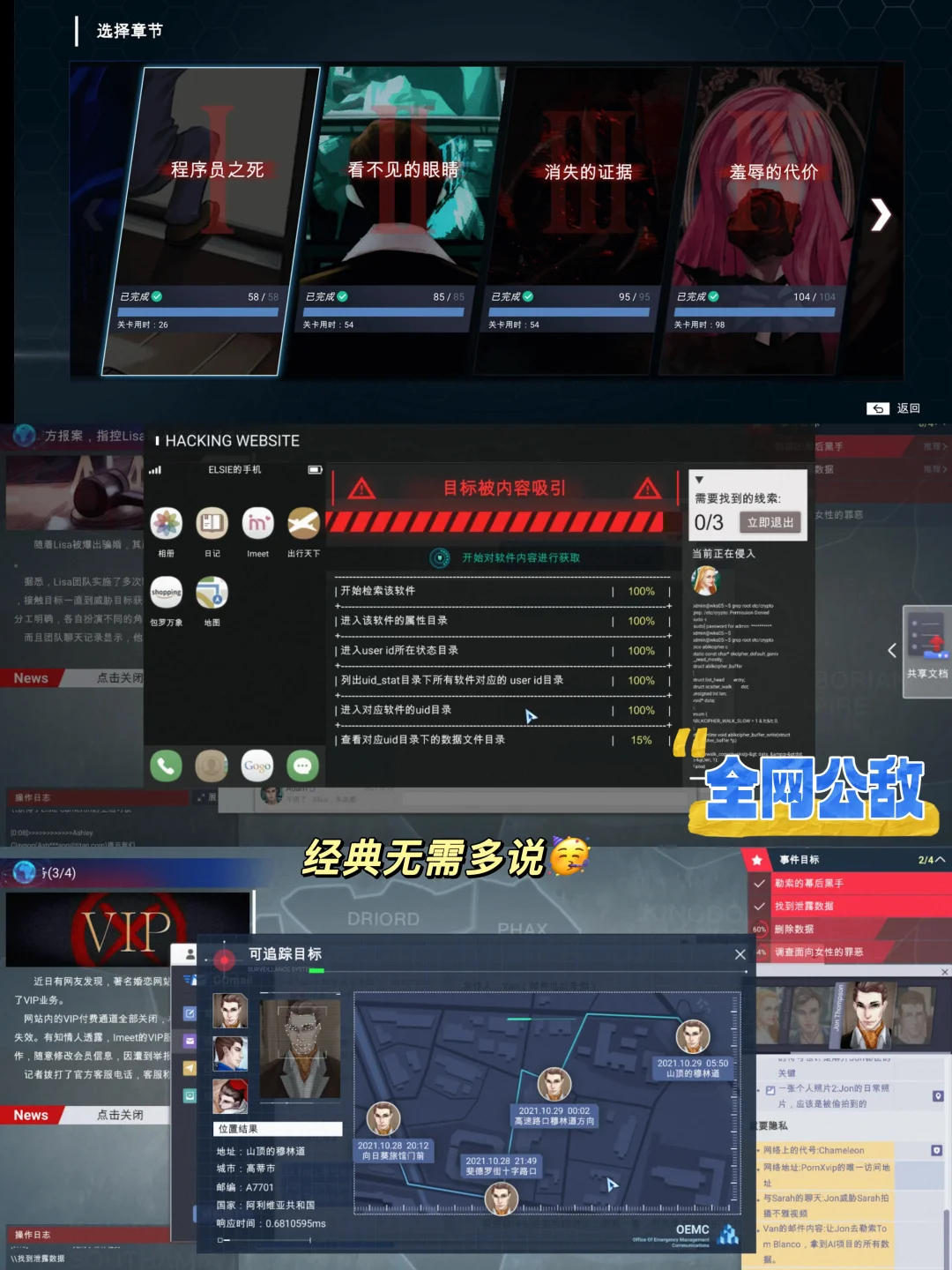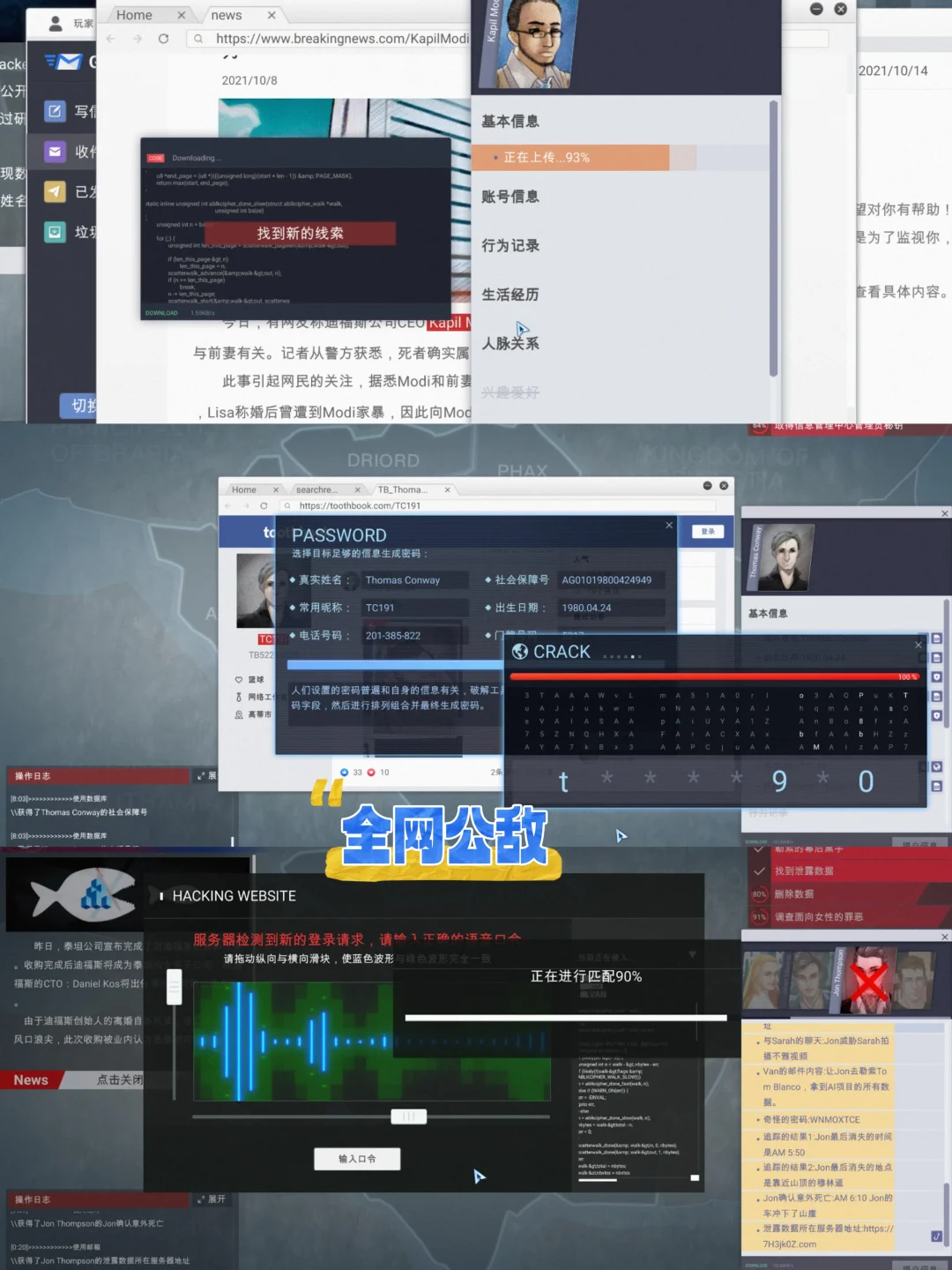 黑客+社会工程+隐私泄露主题,信息收集爽感拉满,剧情伏笔多,越玩越上头,看完真的会反思网络安全。画面做的很棒,总会有我想不到的惊喜出现。手机版也有移植。超爱!!!最爱😍