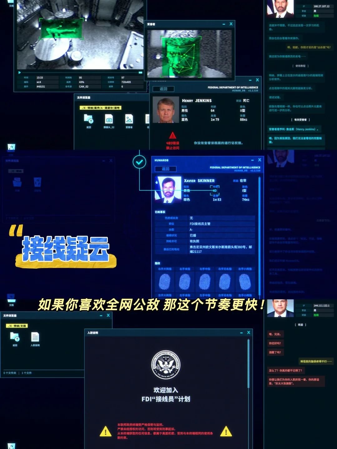 如果你喜欢全网公敌,这个节奏更快更带感!当情报接线员协助特工破案,画面+音乐+氛围都很赛博诡异。