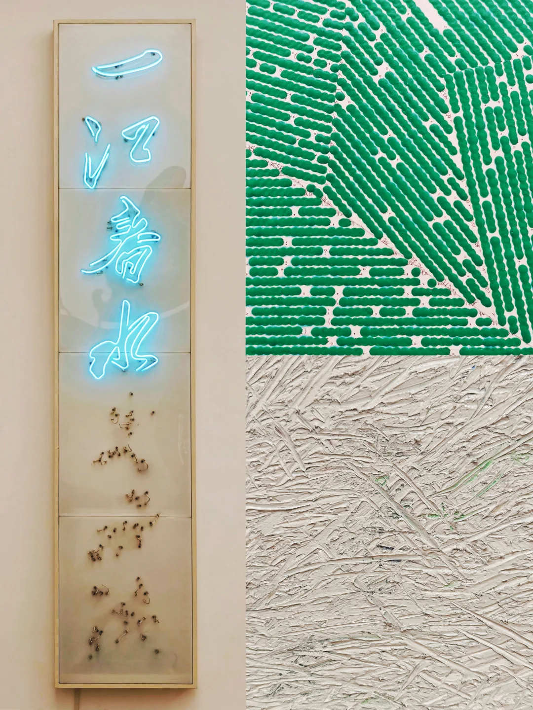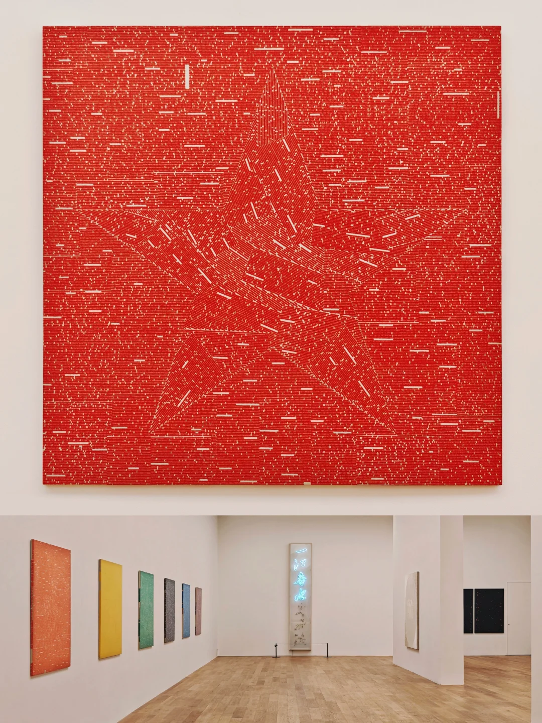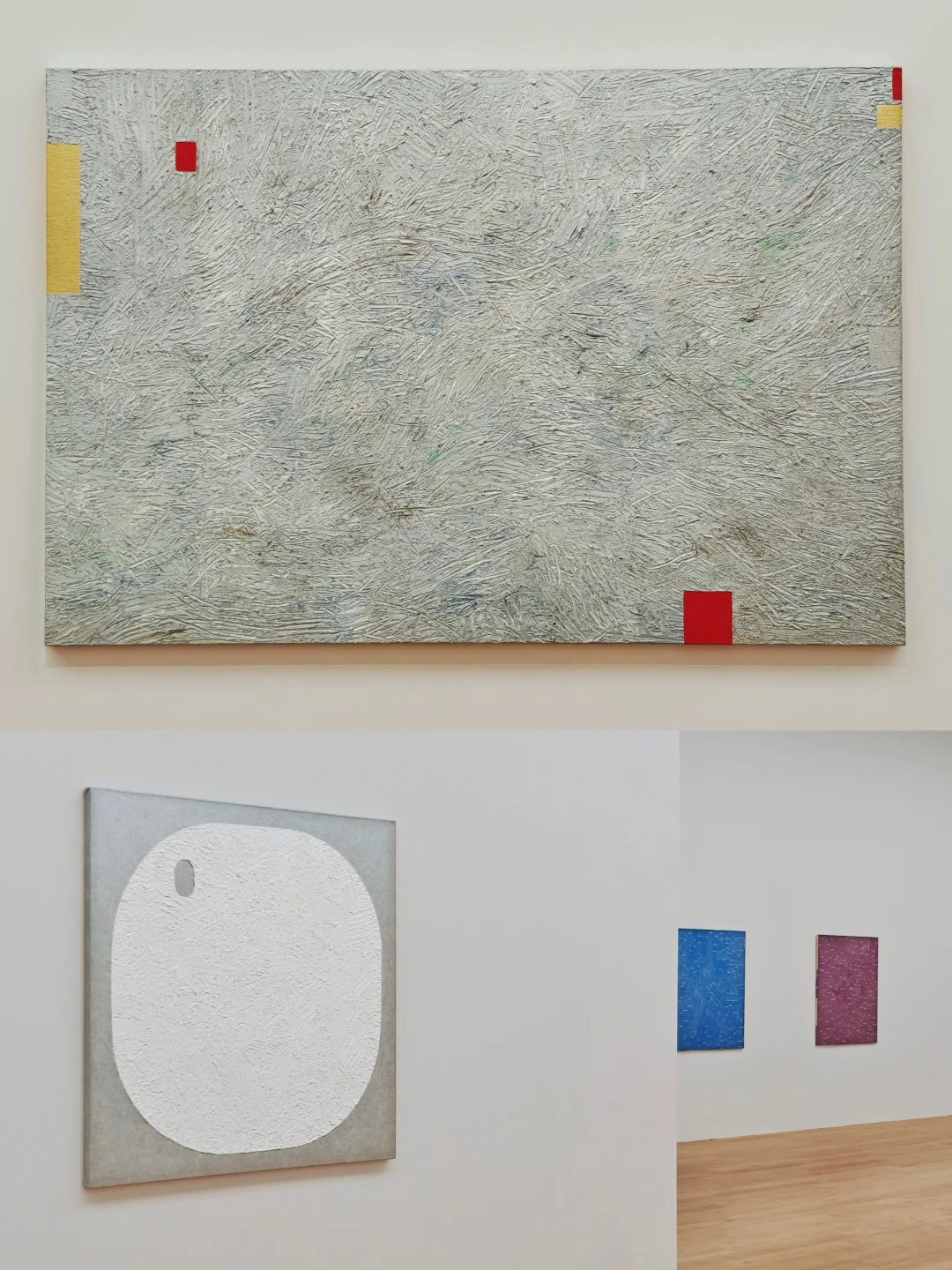 🎨隔壁香格纳的《我没有我》展以艺术家“去自我”理念为核心,呈现其40余年抽象艺术实践。展厅分“颜色区”与“源流区”:前者展出近十年作品,通过油画刀刮擦、画布钻孔等手法消解笔触,构建极简符号化抽象语言;后者回溯80年代末创作,展现其从具象到极简抽象的探索。(上一篇内容,可去主页🔍)