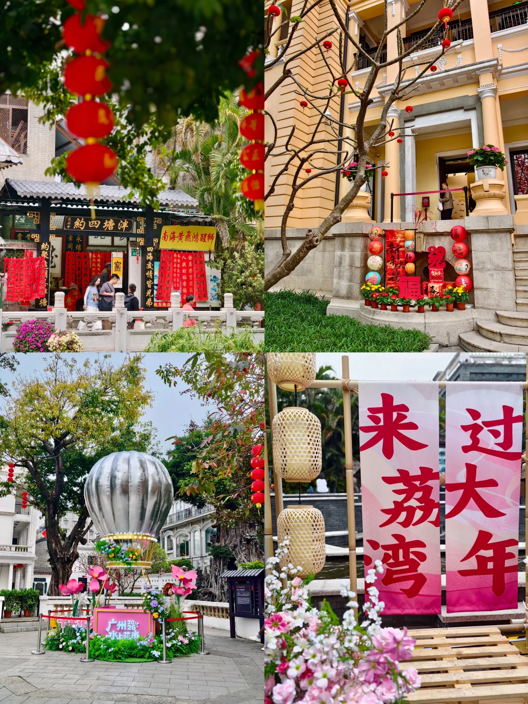 春节来广州玩,怎么能错过西关呢 安排了一条西关citywalk路线 🚶➡️:🚇中山八路A➡️齐雅集(泮塘古村牌坊)➡️西关大字墙➡️船桨墙➡️荔湾湖公园 泮塘古村是广州保存完整的清朝聚落形态的古村还有很多咖啡店、文创店、书店、茶馆、等,都在在小巷里还有许多涂鸦墙 很适合慢慢地闲逛,拍拍照,春节期间也添加了很多过年氛围的元素 在荔湾湖公园还有市集和水上花市,说不定还能碰到穿着汉服的帅哥美女卖花喲 周边:永庆坊。步行就可 打卡点在下面👇地图啦