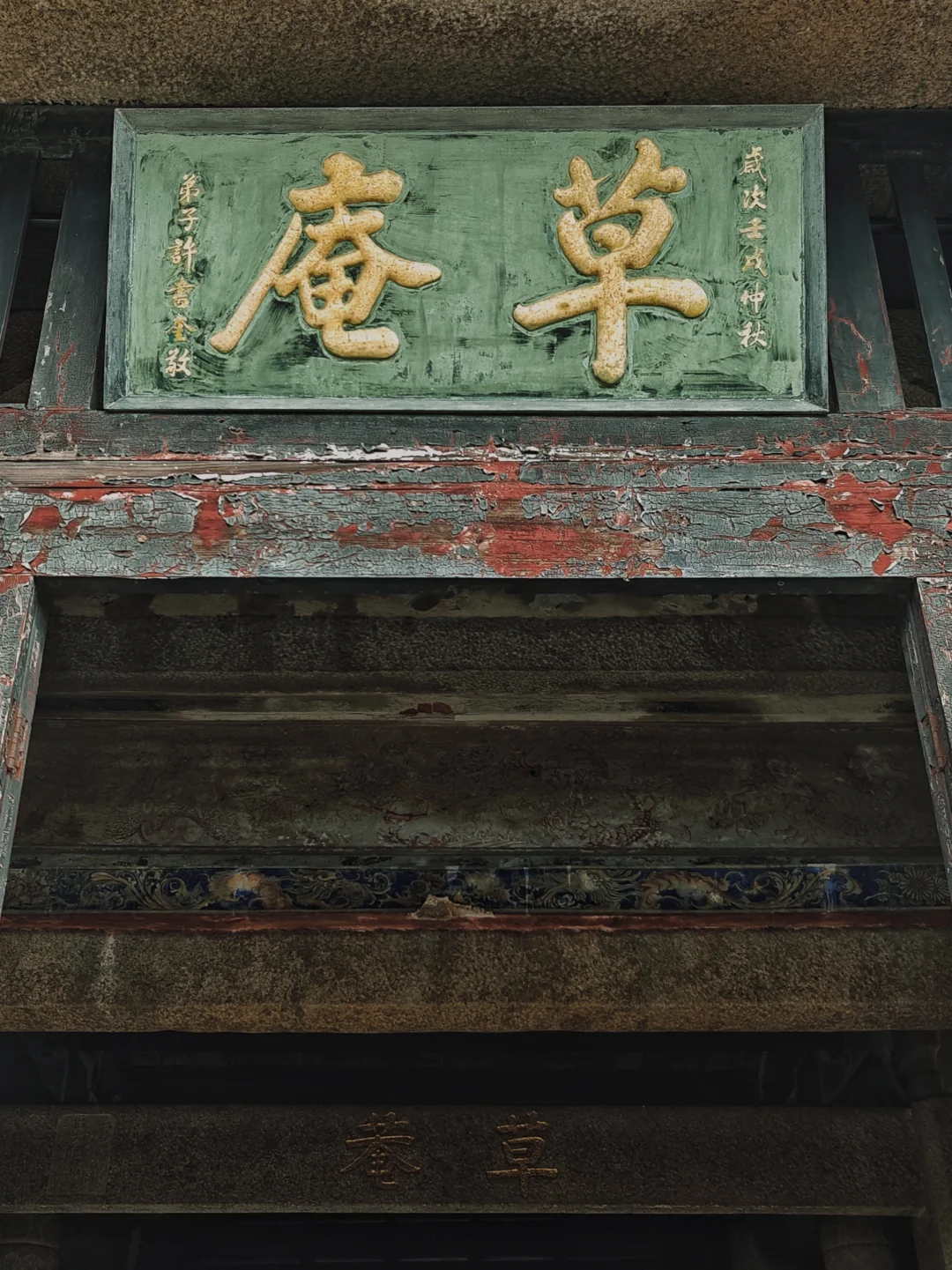 弘一法师曾3次住锡草庵,留下书法石刻对联3副、石刻碑记1方、崖刻1方、木刻对联1副(现藏于晋江市博物馆)及墨书“以戒为师”香积案1对。