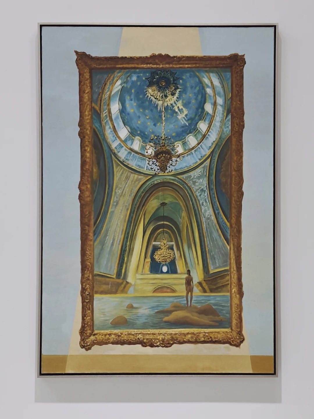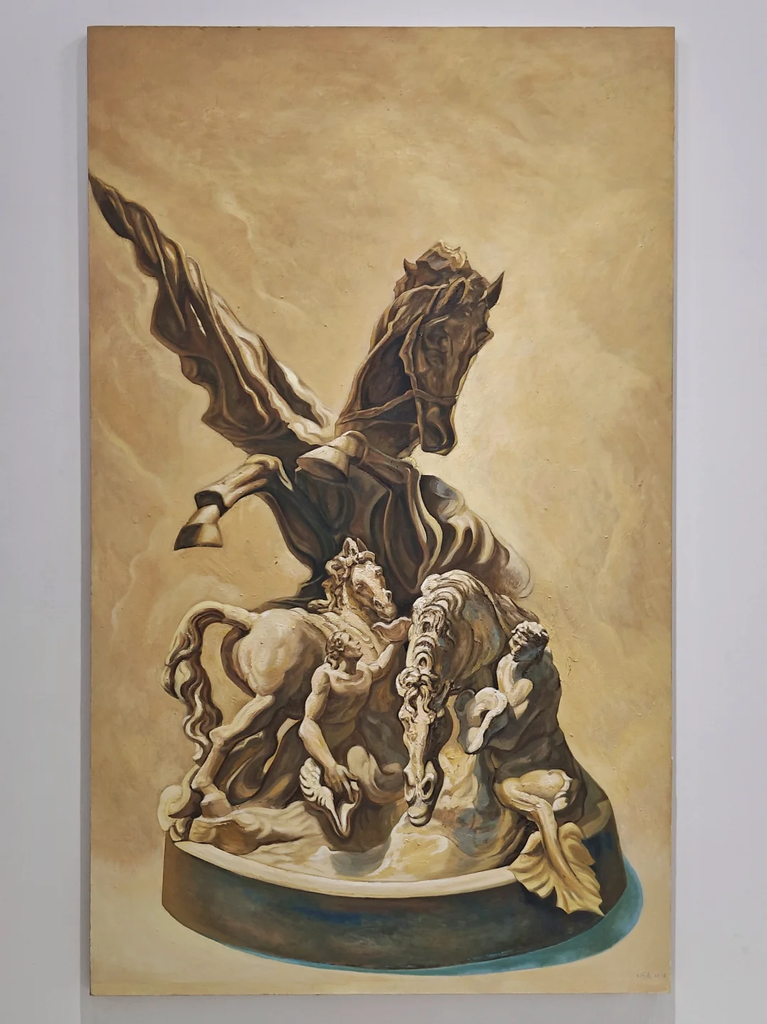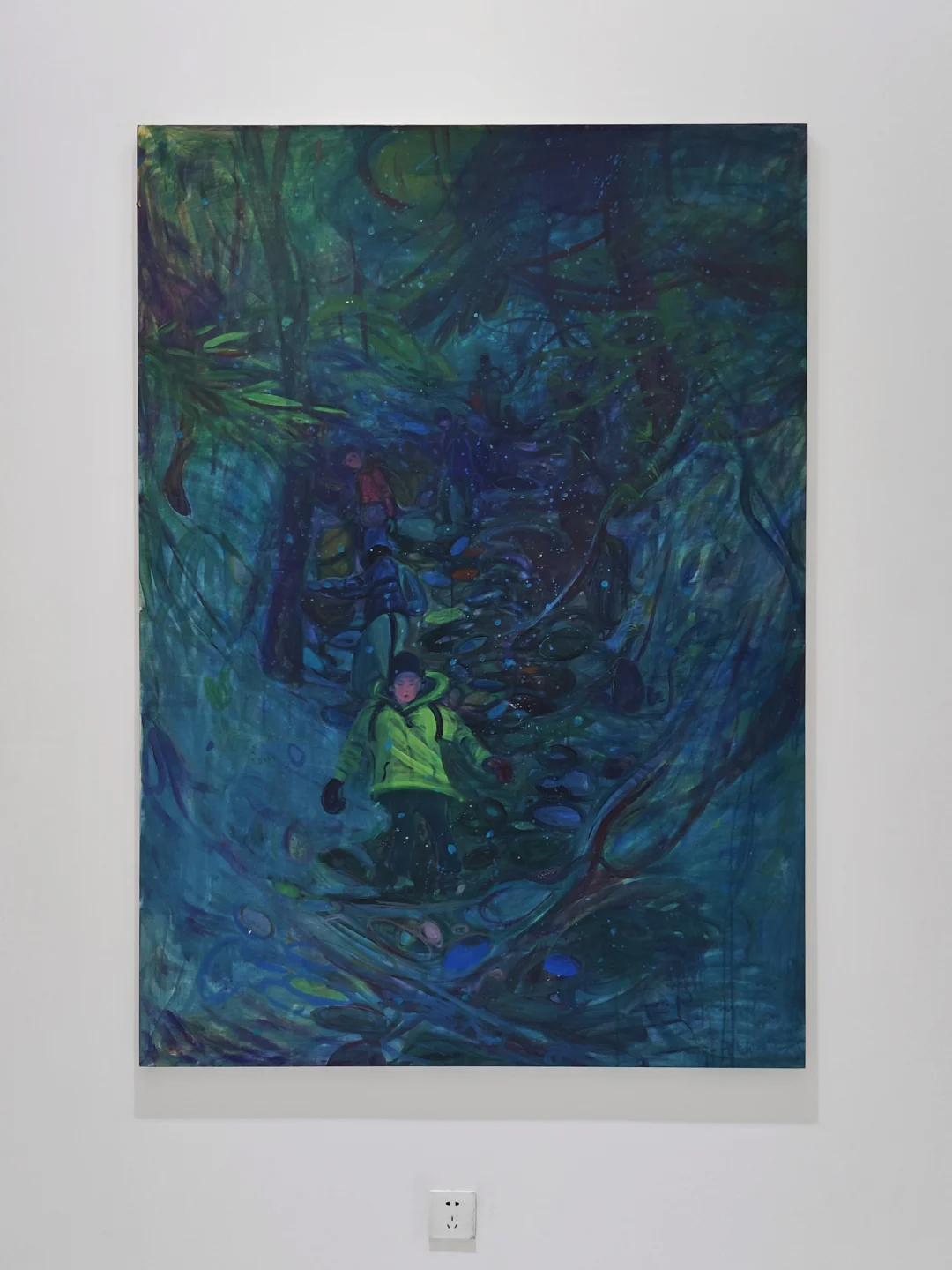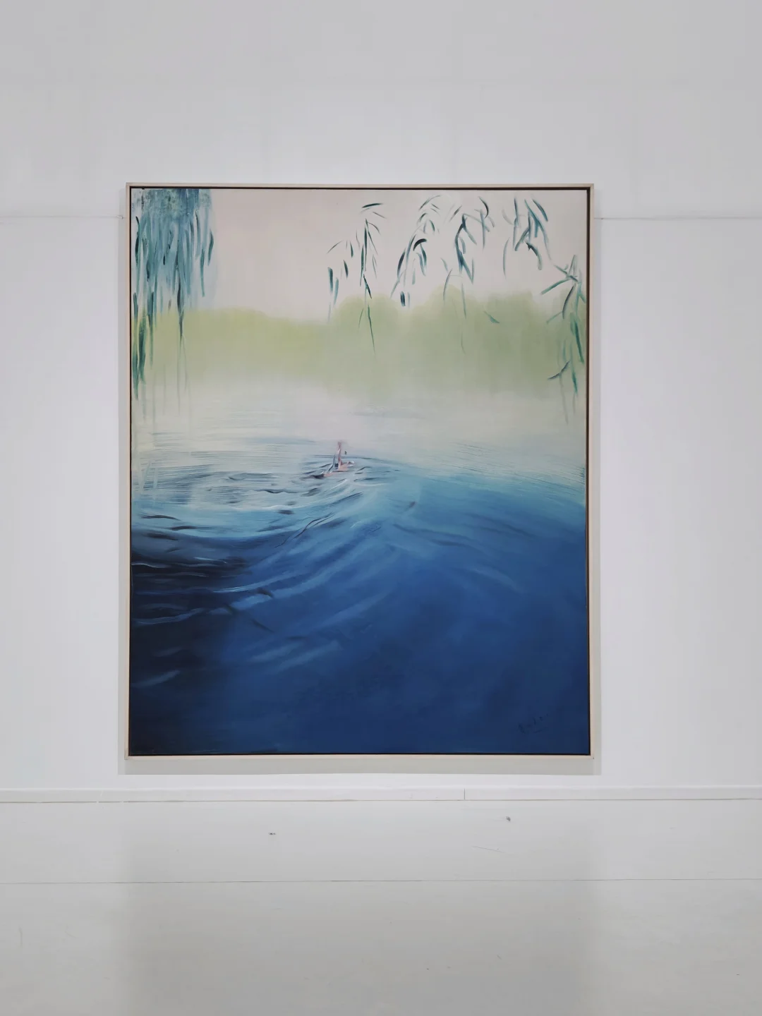 🖼️艺术家试图在画面中重构中国古代绘画中“人与自然和谐共生”的传统,并反思当代社会这一主题的稀缺性。通过游泳者、登山者等意象,强调个体在自然中的存在感与精神觉醒。
