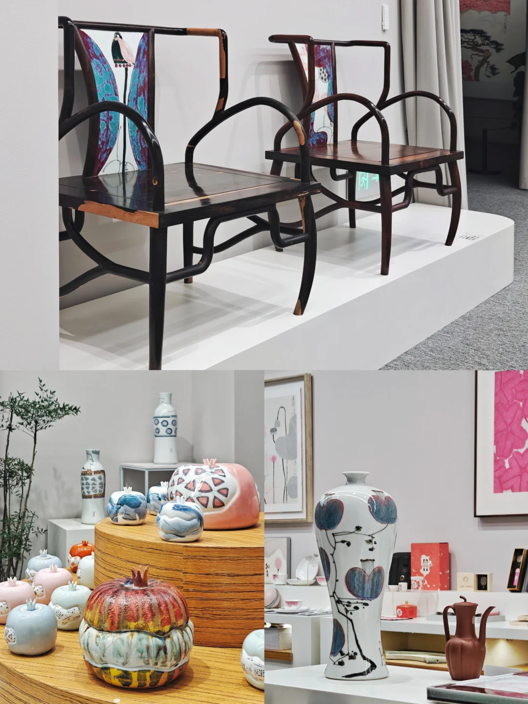 🖼️老先生的创作涵盖绘画、陶瓷、缂丝等领域,作品多次作为国礼赠予国际政要,并在G20峰会等国际场合展出。本次的展览也设置了一个不小的衍生品空间,包括家居、文创、时尚配件等许多开发成熟的精美产品,也算是一个亮点。