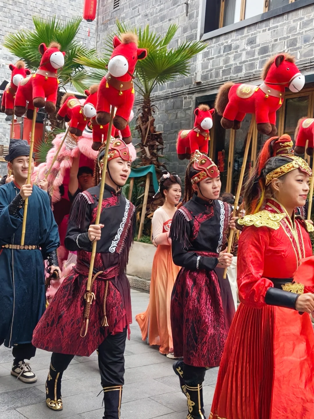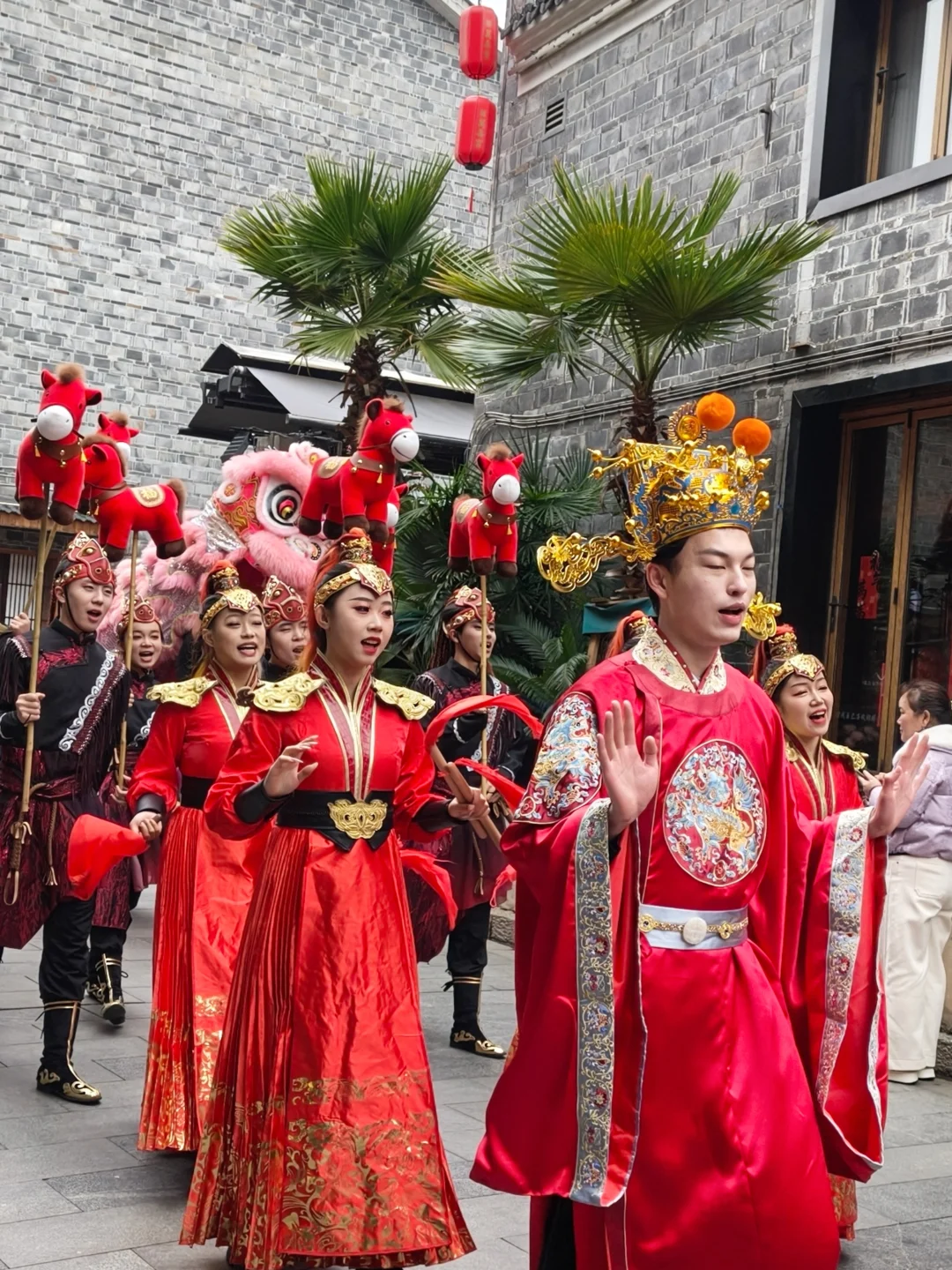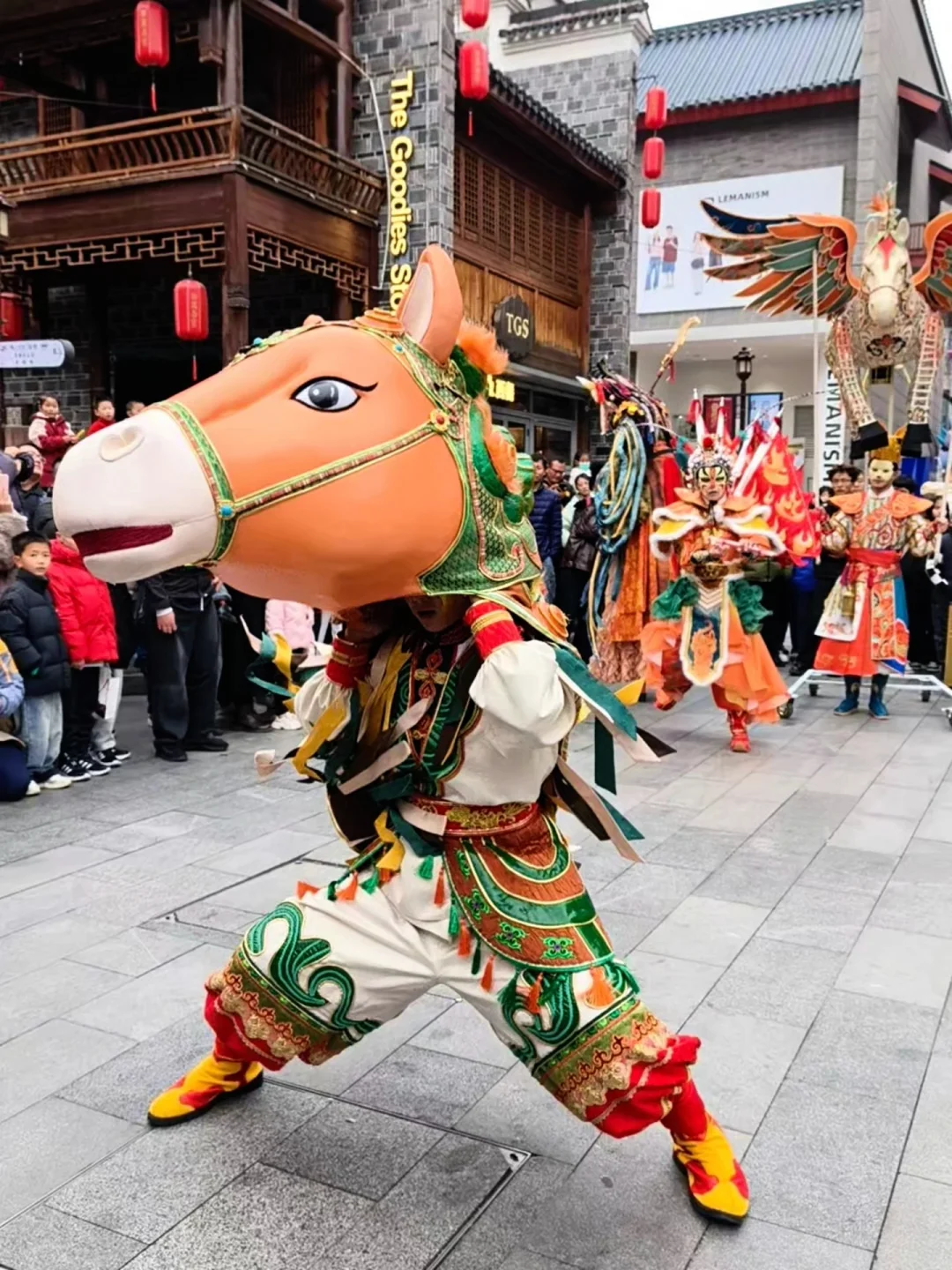 街区里的春节🏮活动更是多到玩不过来:必看的“飞马🐴传竹”传递着新春好运,马🐴舞与梅花桩舞狮🦁惊险又喜庆,还有蜿蜒穿梭的舞龙🐉巡游和财神踩高跷秀!别忘了打卡那个超火的蓝紫渐变巨型飞马装置,简直是朋友圈C位预定!整个街区布置得红红火火🔥🔥,随手一拍📸都是大片!