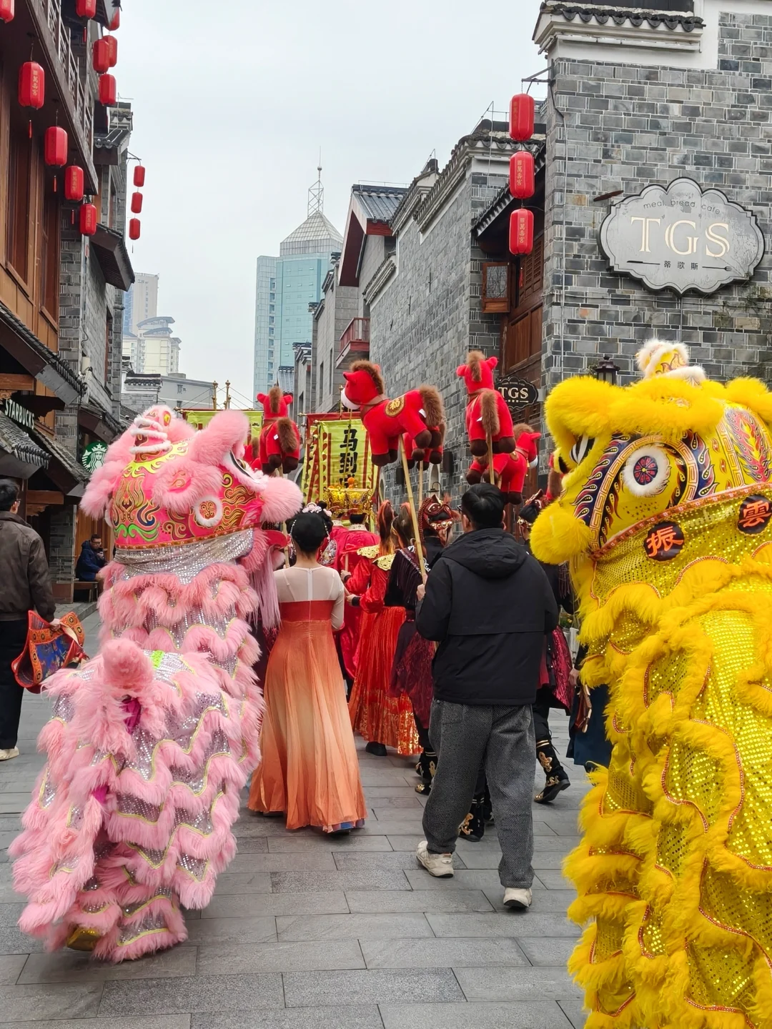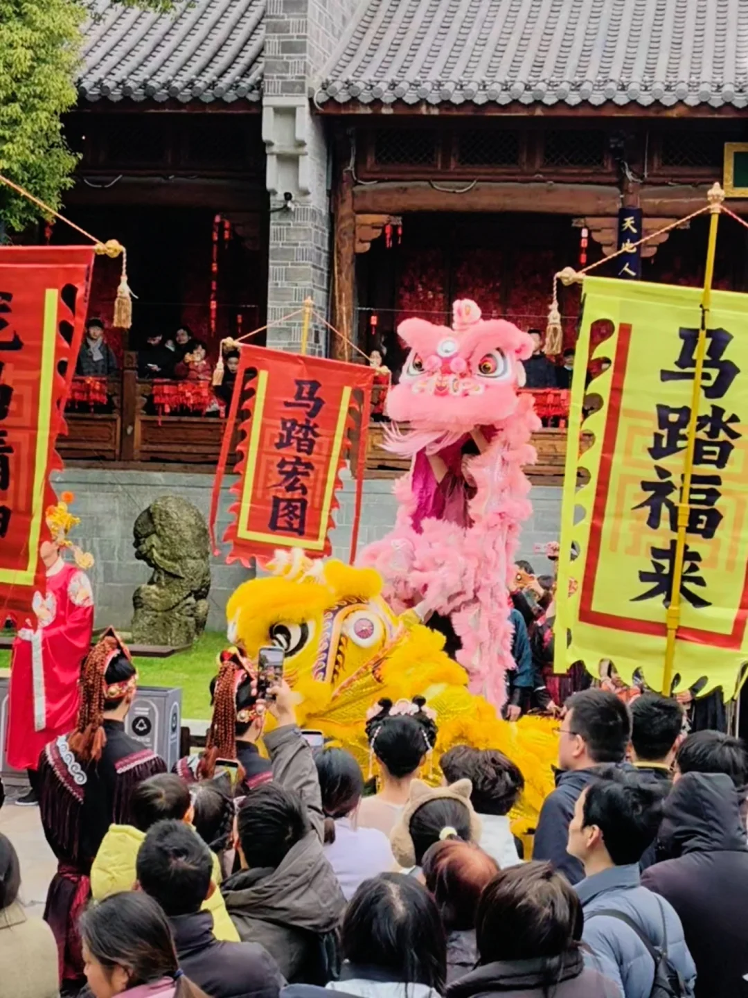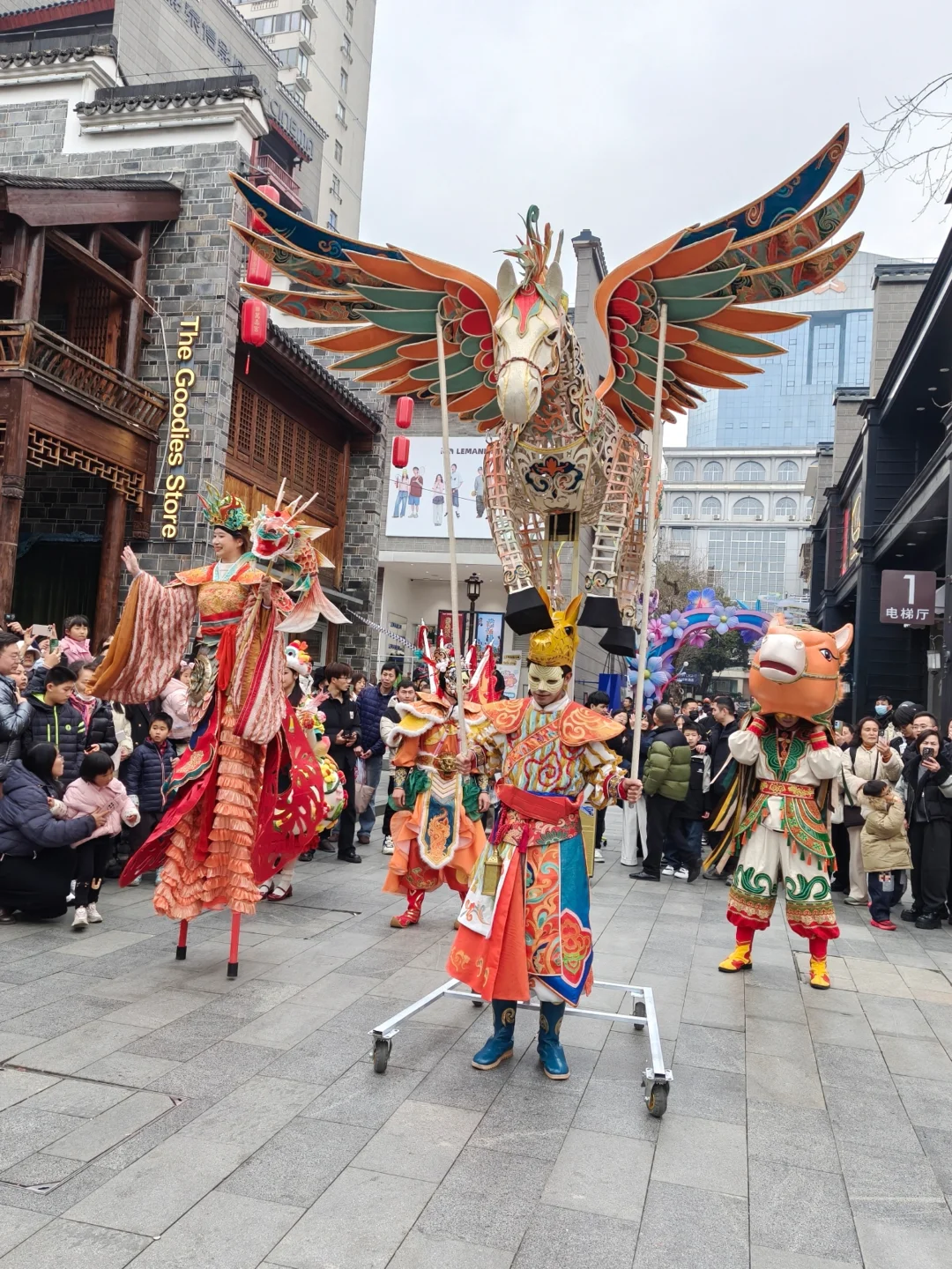 街区里的春节🏮活动更是多到玩不过来:必看的“飞马🐴传竹”传递着新春好运,马🐴舞与梅花桩舞狮🦁惊险又喜庆,还有蜿蜒穿梭的舞龙🐉巡游和财神踩高跷秀!别忘了打卡那个超火的蓝紫渐变巨型飞马装置,简直是朋友圈C位预定!整个街区布置得红红火火🔥🔥,随手一拍📸都是大片!