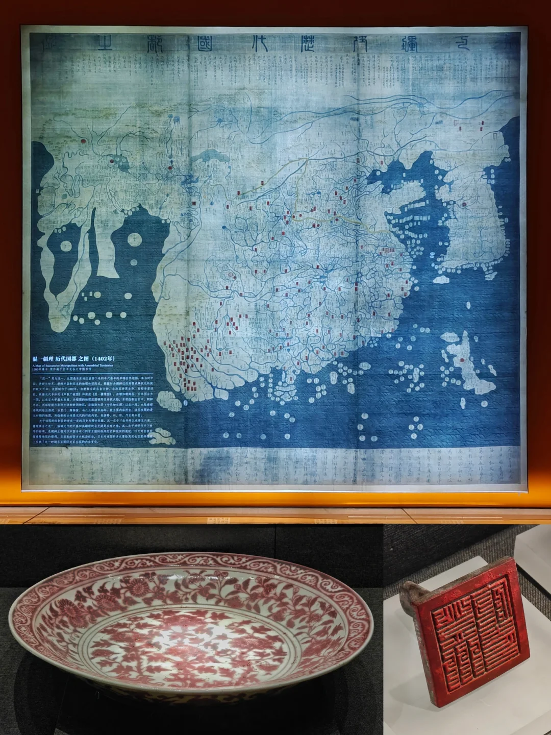 第二阶段会展出利玛窦绘制的《坤舆万国全图》,南博镇馆之宝,上一次90年大展没来看的这次可别错过。目前在展的是比利时人南怀仁绘制的《坤舆全图》,同样珍贵且是首次亮相。