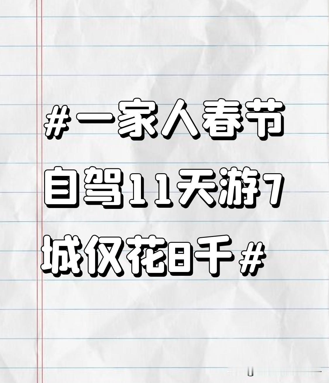 一家人春节自驾11天游7城仅花8千 一家人春节自驾 11 天游 7 城仅花 8 千,这性价比简直绝了!想想春节出游本就花费高,他们还能如此省钱,太会过日子了。 这 11 天跑 7 个城市,行程安排得肯定很紧凑。住宿方面,估计选的是性价比高的民宿或者快捷酒店。吃饭也没去那些宰客的景区餐厅,而是找了当地实惠的小饭馆。自驾的话,油费和过路费也是一笔开支,他们肯定提前规划好了路线,避免了不必要的绕路。这一趟下来,既玩得开心,又没花多少钱,真是让人羡慕,以后我出游也得学学这省钱攻略。