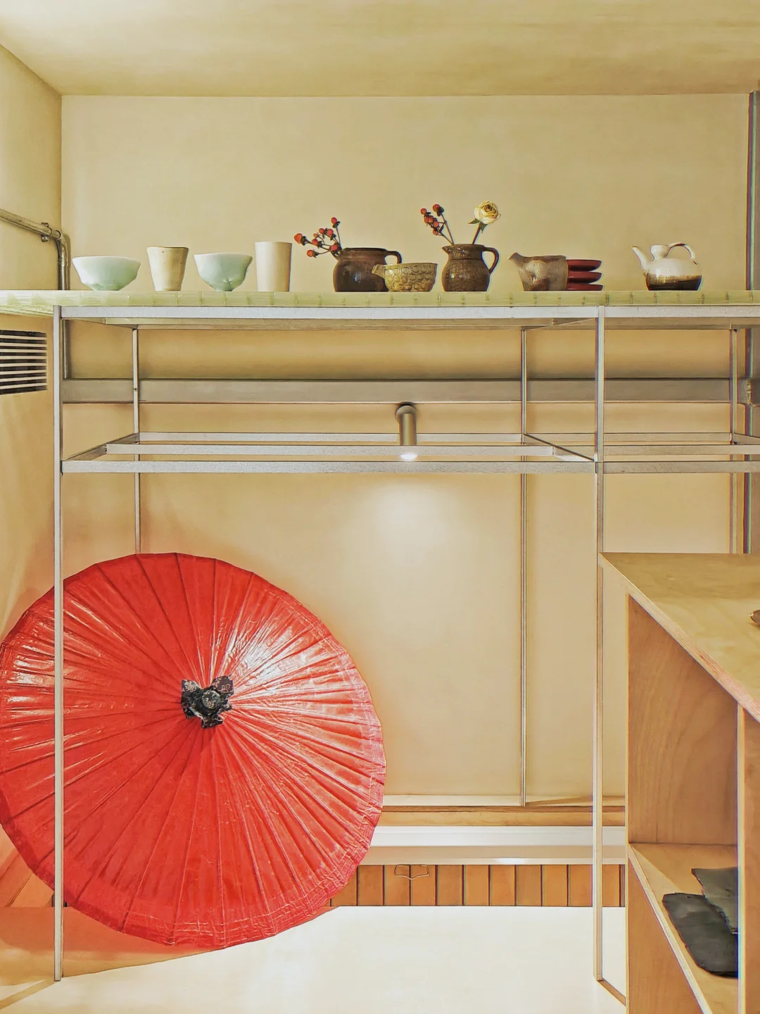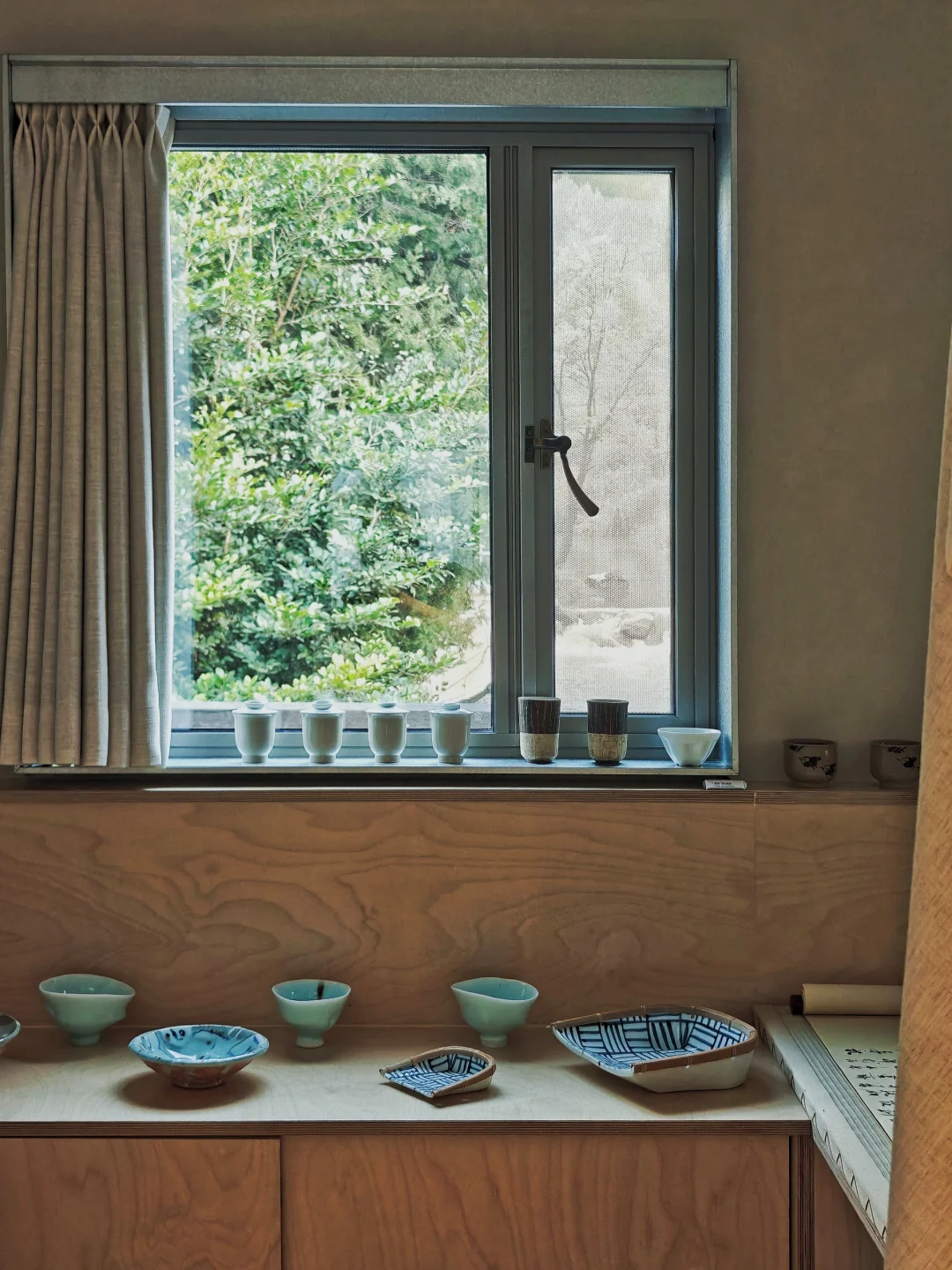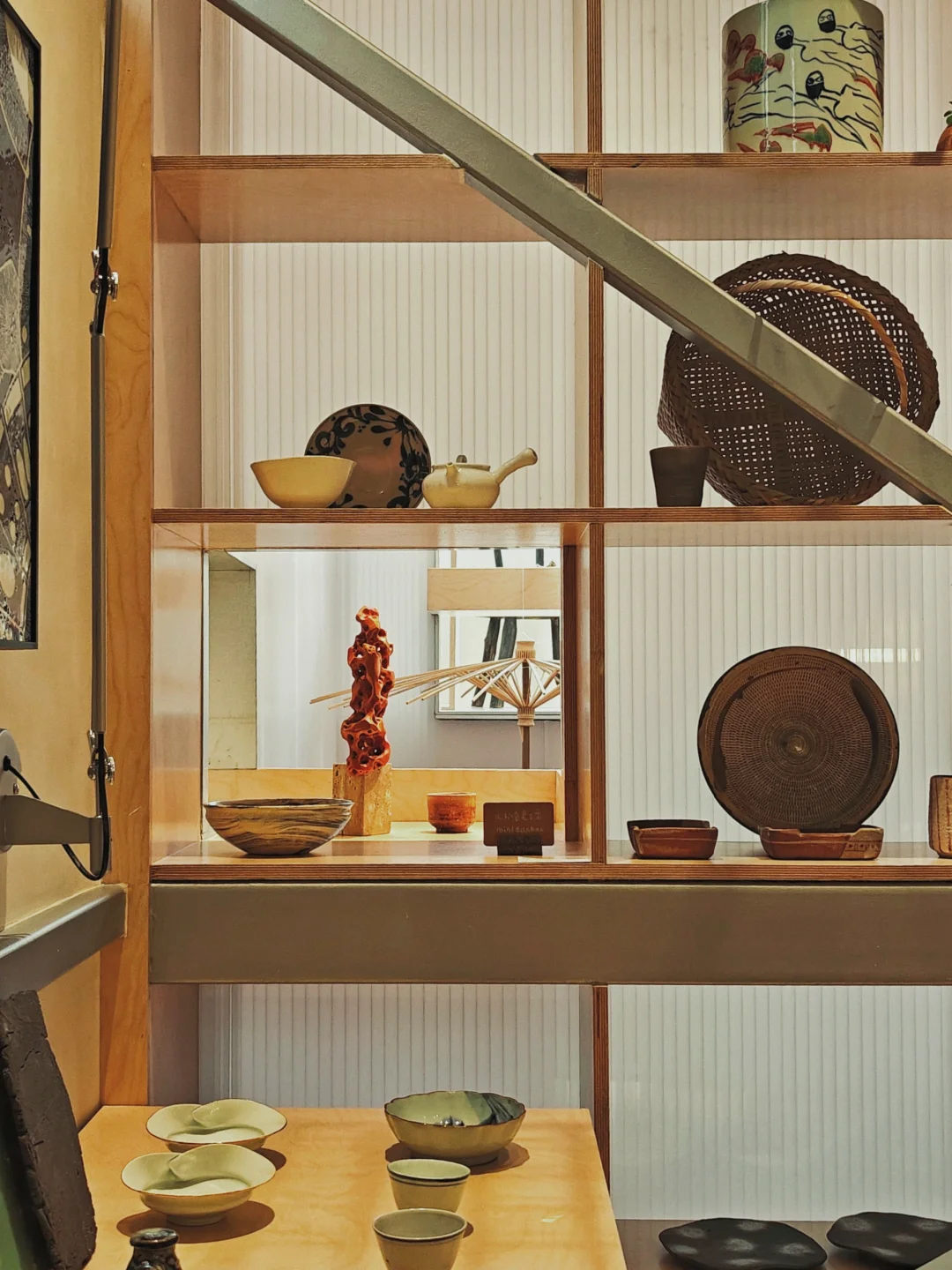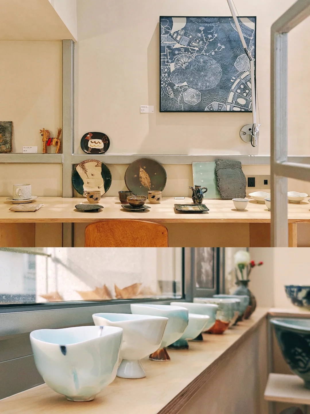 🟢工作人员小姐姐本身也是建筑师出身很亲切,听她介绍这个空间是建筑师与景德镇三宝村的陶艺家们合作创办的。查了一下空间的改造设计是2016年成立于上海的灰空间建筑事务所,创始人还是同济校友(果然!)。此处借用他们自己的介绍:以一个平衡者的姿态介入,不着重强调形式美学,而是解决复杂的场地和功能问题的同时,在空间、形式、光线、材料、节点等方面寻找细微的突破点,赋予建筑本身外观形象以不同层面的意义。