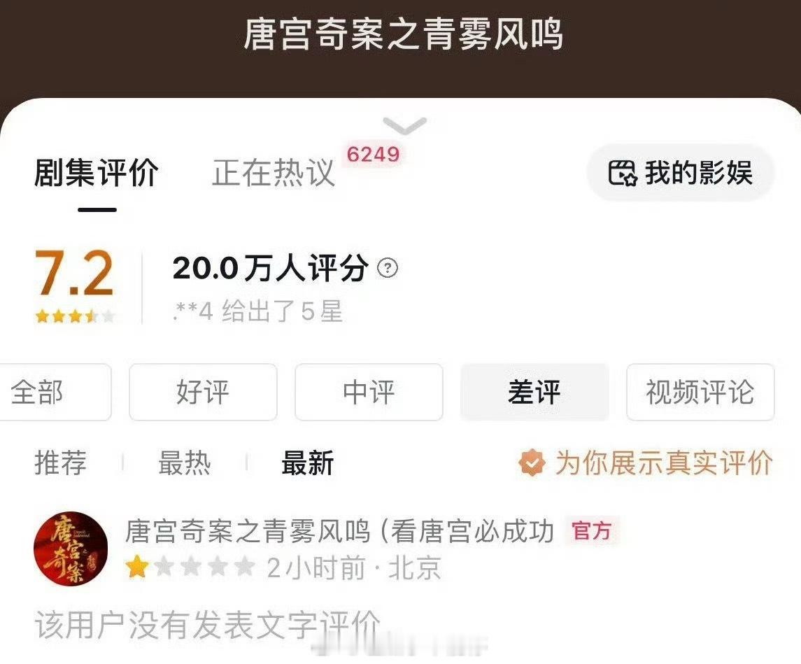 唐宫奇案官方给唐宫奇案打一星白鹿、王星越的《唐宫奇案》官抖回应了,应该确实bug了,这么低级的错误不会有人犯的