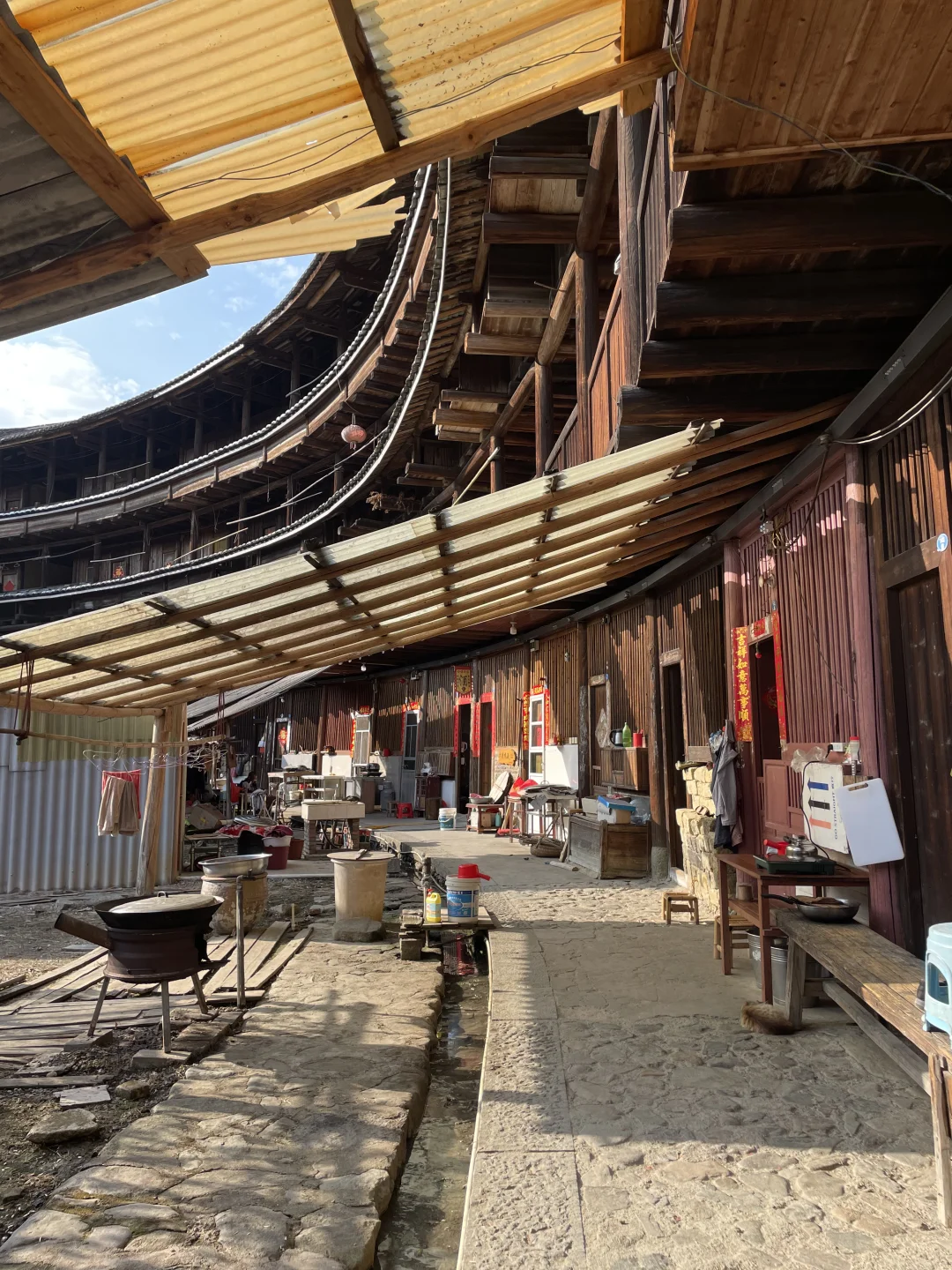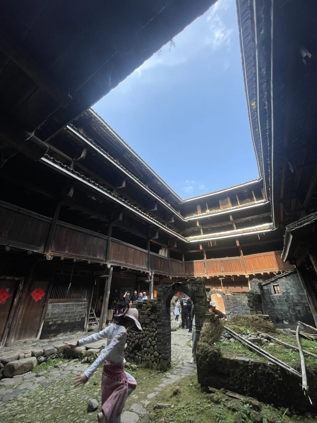 古镇里有几栋土楼。万德楼,没有住人,可以免费上楼,另一个好像是私人的,很破旧,楼梯感觉都快塌了,就没敢上去!