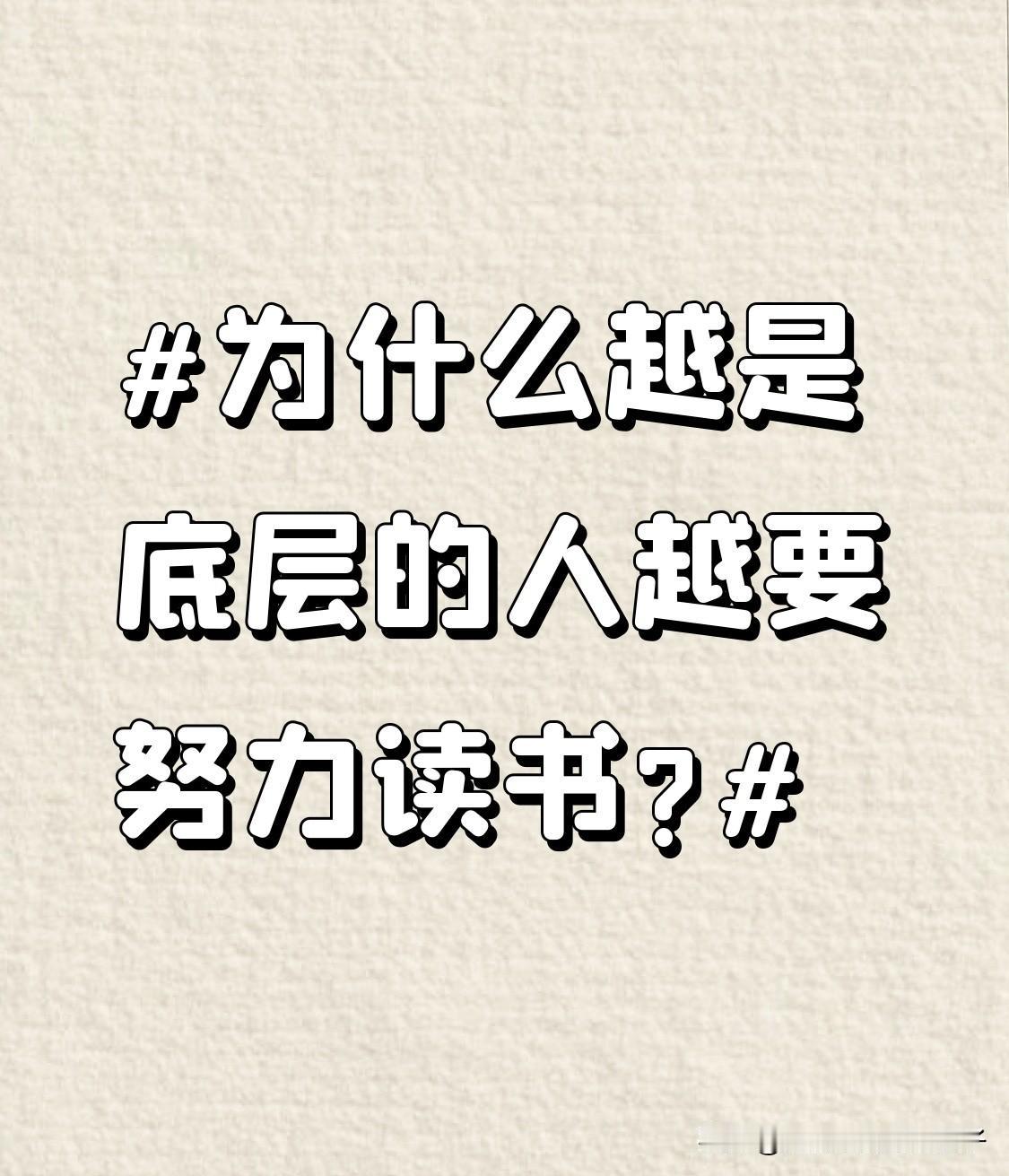 为什么越是底层的人越要努力读书? 越是底层的人越要努力读书,这是残酷现实下的最优解。底层原生家庭和环境受限,周围人多讨论日常生计,对世界深层逻辑了解少,容易陷入“认知闭环”。而读书能打破这一闭环,让人跨越时空与智者对话,提升认知水平。 读书也是获得“硬通货”、敲开机会之门的途径。学历证书或培训等级证书是进入理想工作单位的敲门砖。我有个初中学历的朋友,自学考取会计师证,在深圳买房买铺。深圳某教育平台老板也是初中毕业,坚持学习读书,最后公司成功上市。对底层人来说,读书就是改变命运的最好途径。