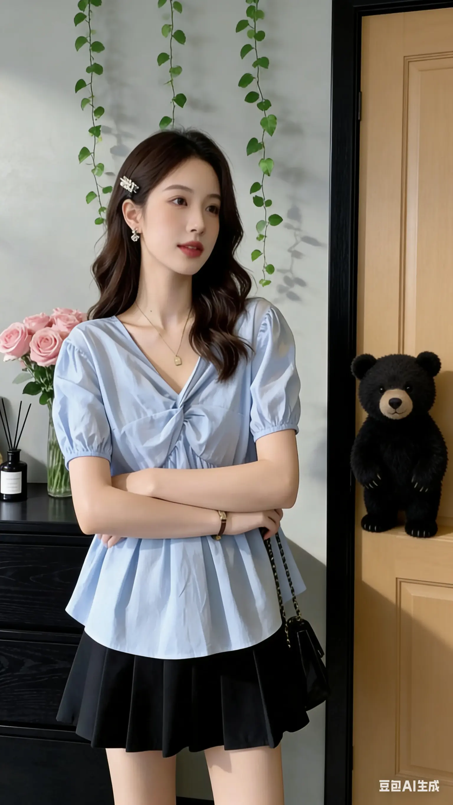 衬衫扣到最上面一颗,是为了锁住专业;裙摆提到最高一寸,是为了释放自我。衬衫拍照姿