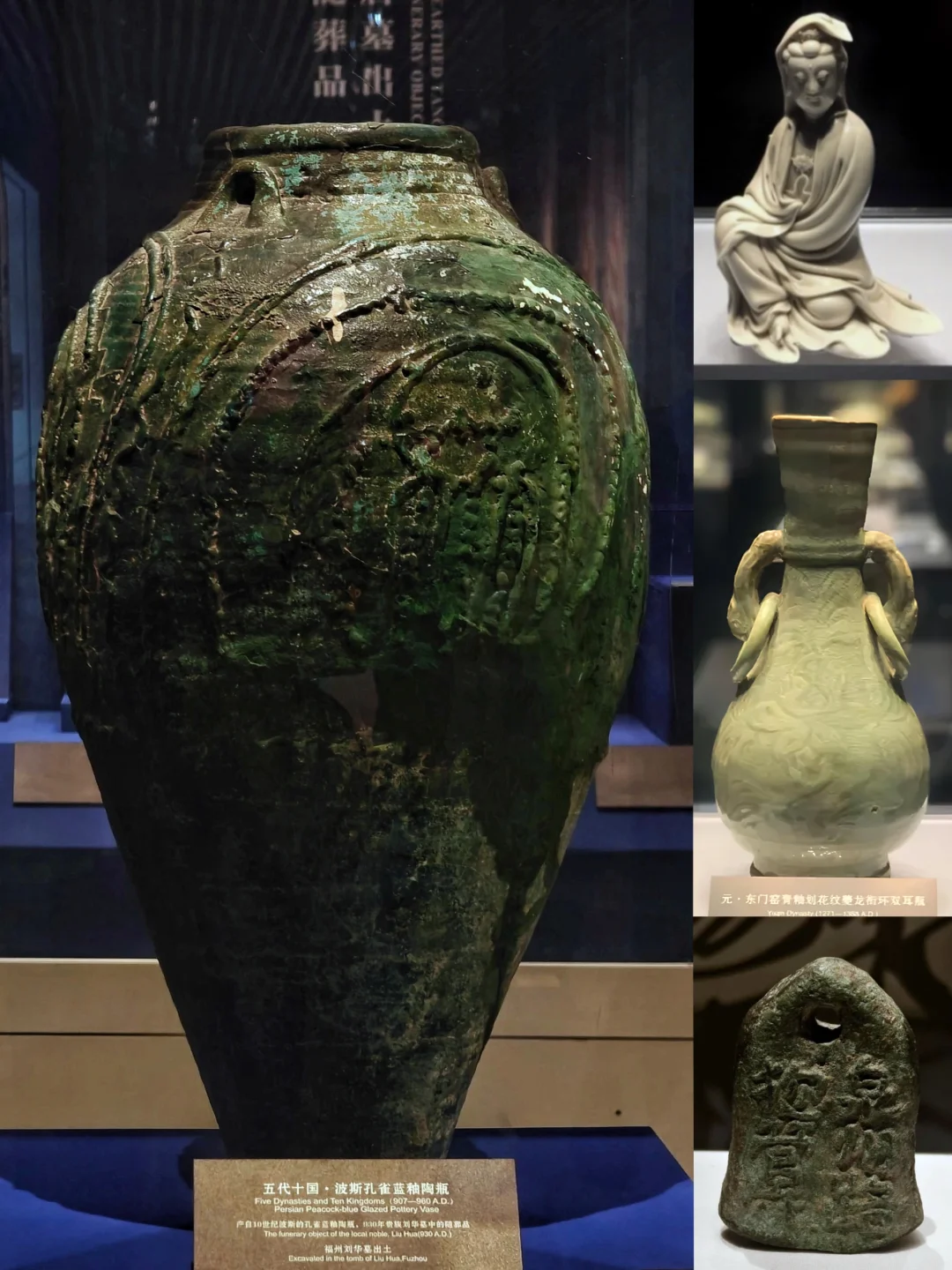 🔸海外贸易:福州刘华墓出土五代十国波斯孔雀蓝釉陶瓶、“南海1号”出土文物、管理海外贸易的机构市舶司