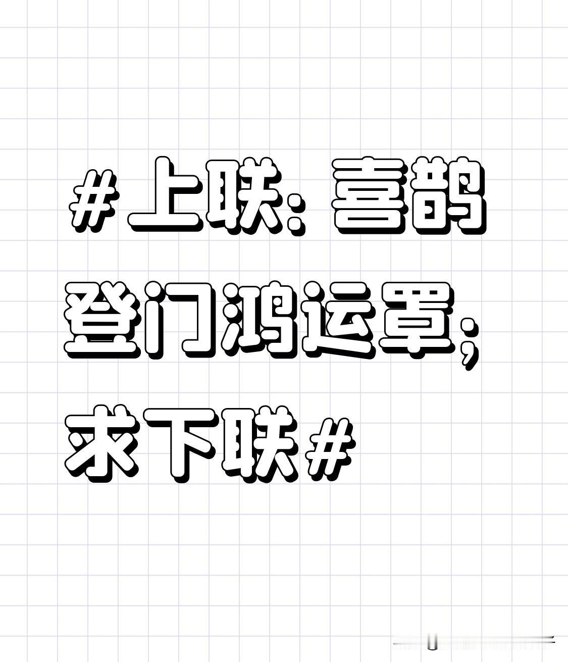 看到“喜鹊登门鸿运罩”这个上联,瞬间来了兴致。这上联寓意多好啊,喜鹊登门那可是喜事要到,鸿运笼罩,日子肯定越来越顺。 我琢磨了个下联“紫燕绕梁瑞气来”。紫燕也是很吉祥的鸟儿,绕着房梁飞,就像祥瑞之气萦绕,和上联的喜鹊对应得还挺妙,而且“瑞气来”也跟“鸿运罩”一样,满满的都是好兆头。当然,像“紫燕穿柳绿丝摇”也挺不错,给人一种生机勃勃、春意盎然的感觉。大家觉得哪个下联更合适呢?