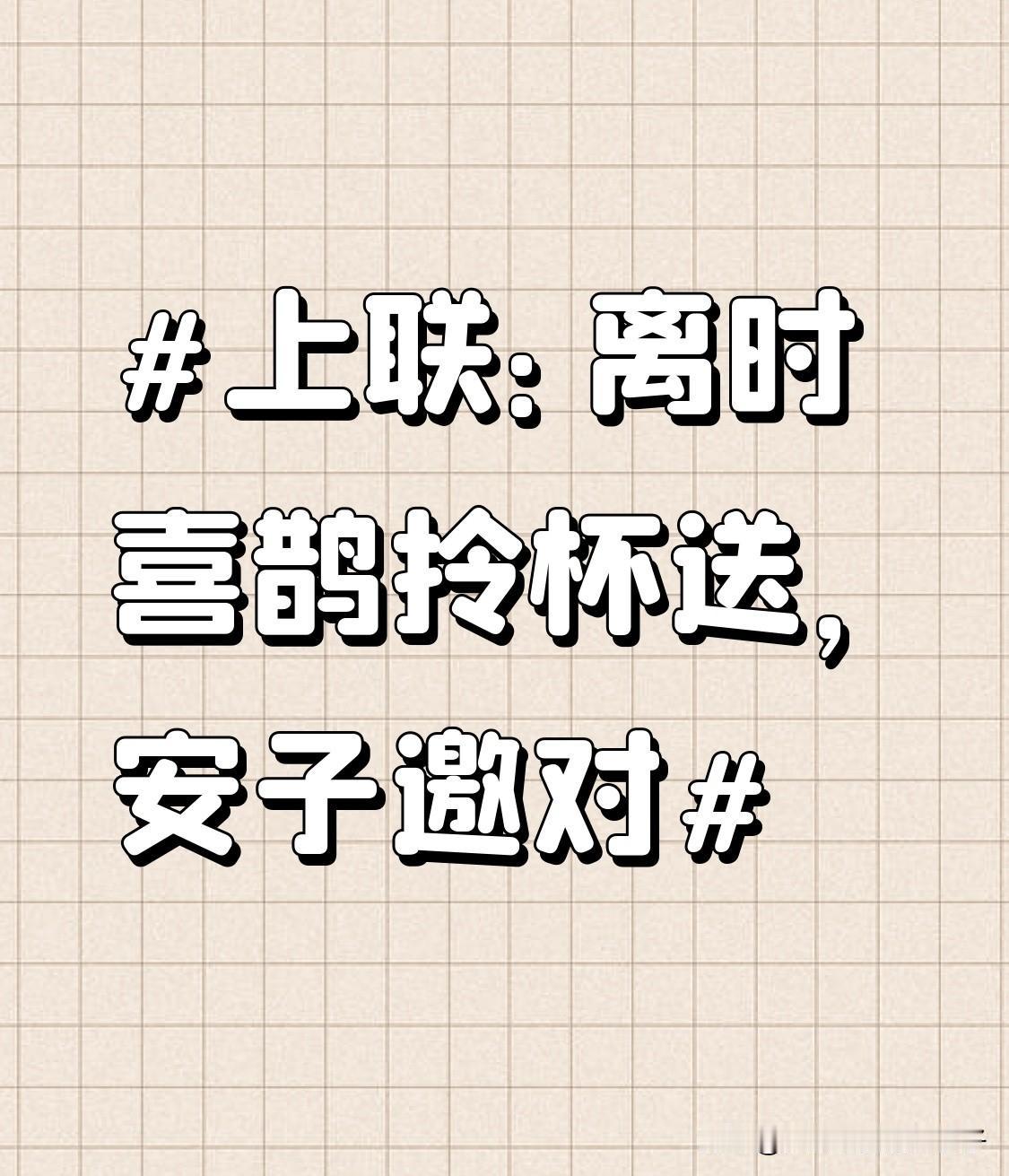 看到“离时喜鹊拎杯送”这个上联,感觉特别有意境,仿佛一幅离别的画面就在眼前,喜鹊都来送别,还拎着杯子,太有画面感了。 我对个下联“归日黄莺绕树迎”。“归日”对应“离时”,时间上一归一离,很合适。“黄莺”和“喜鹊”都是鸟类,对仗工整。“绕树迎”和“拎杯送”动作呼应,一个迎接一个送别,整体意境也搭。要是和“常见河畔柳拂肩”比,我觉得我这联更能和上联匹配,你们觉得我对得咋样?