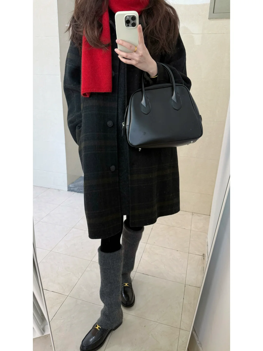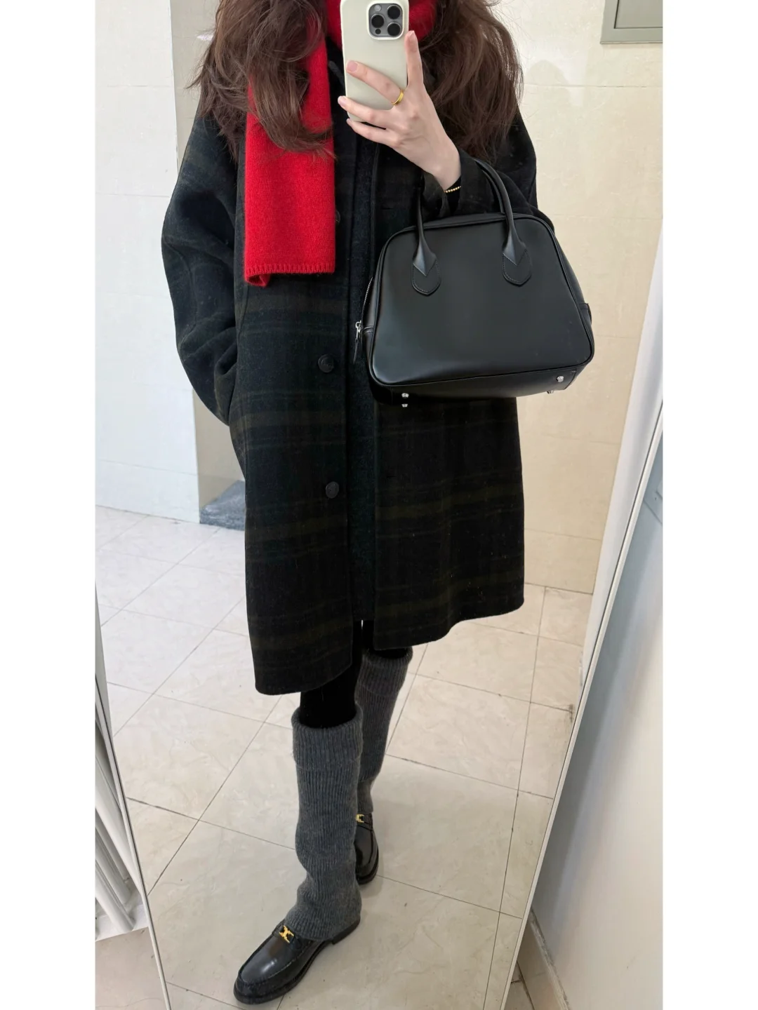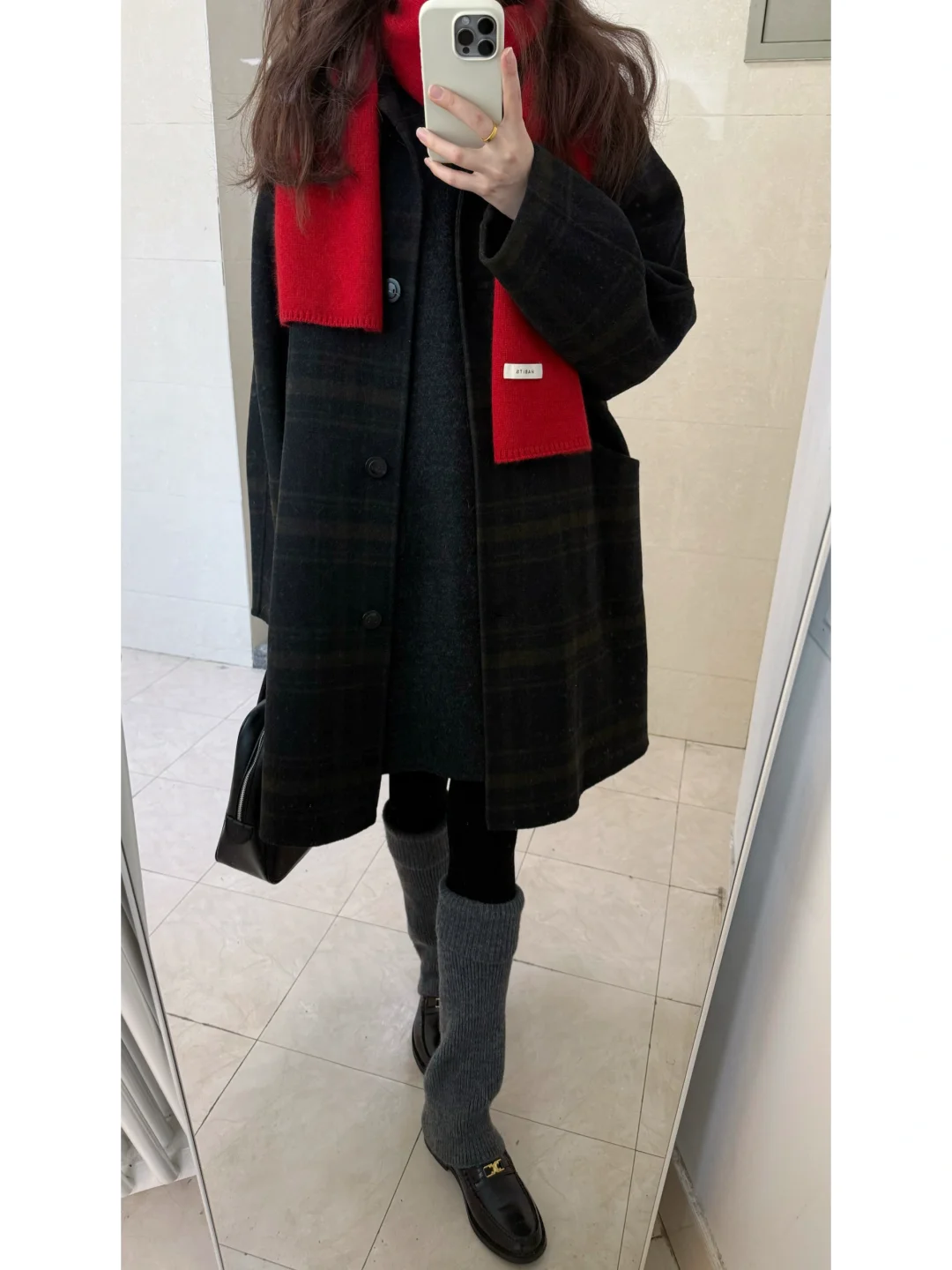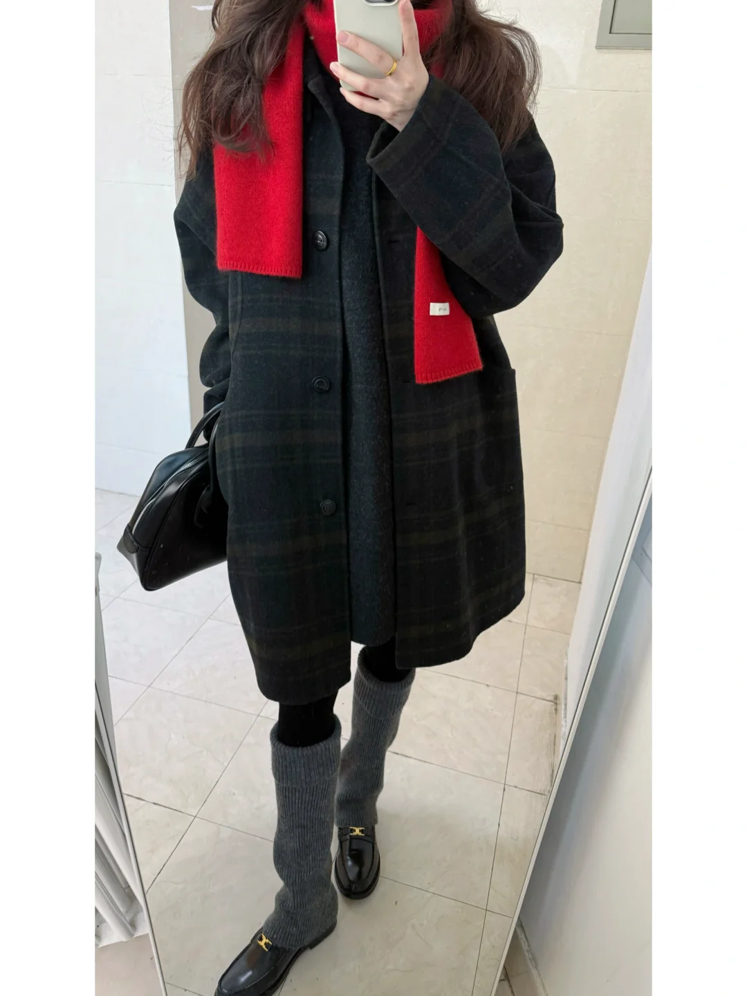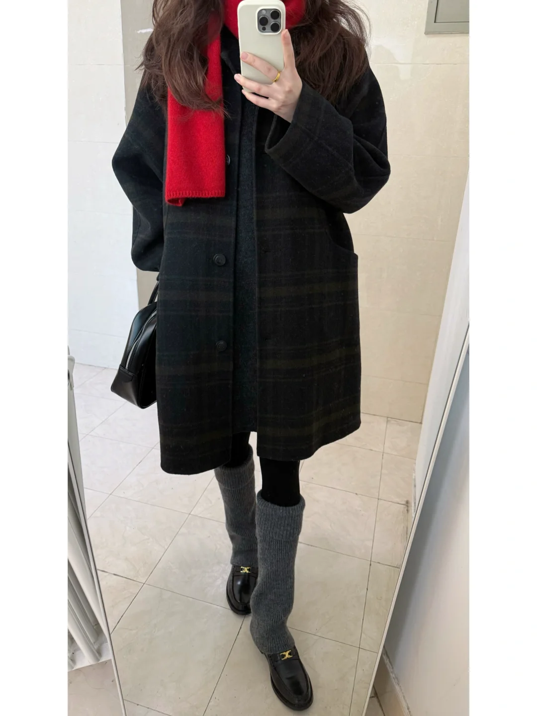 圣诞穿什么/ 绿格纹大衣