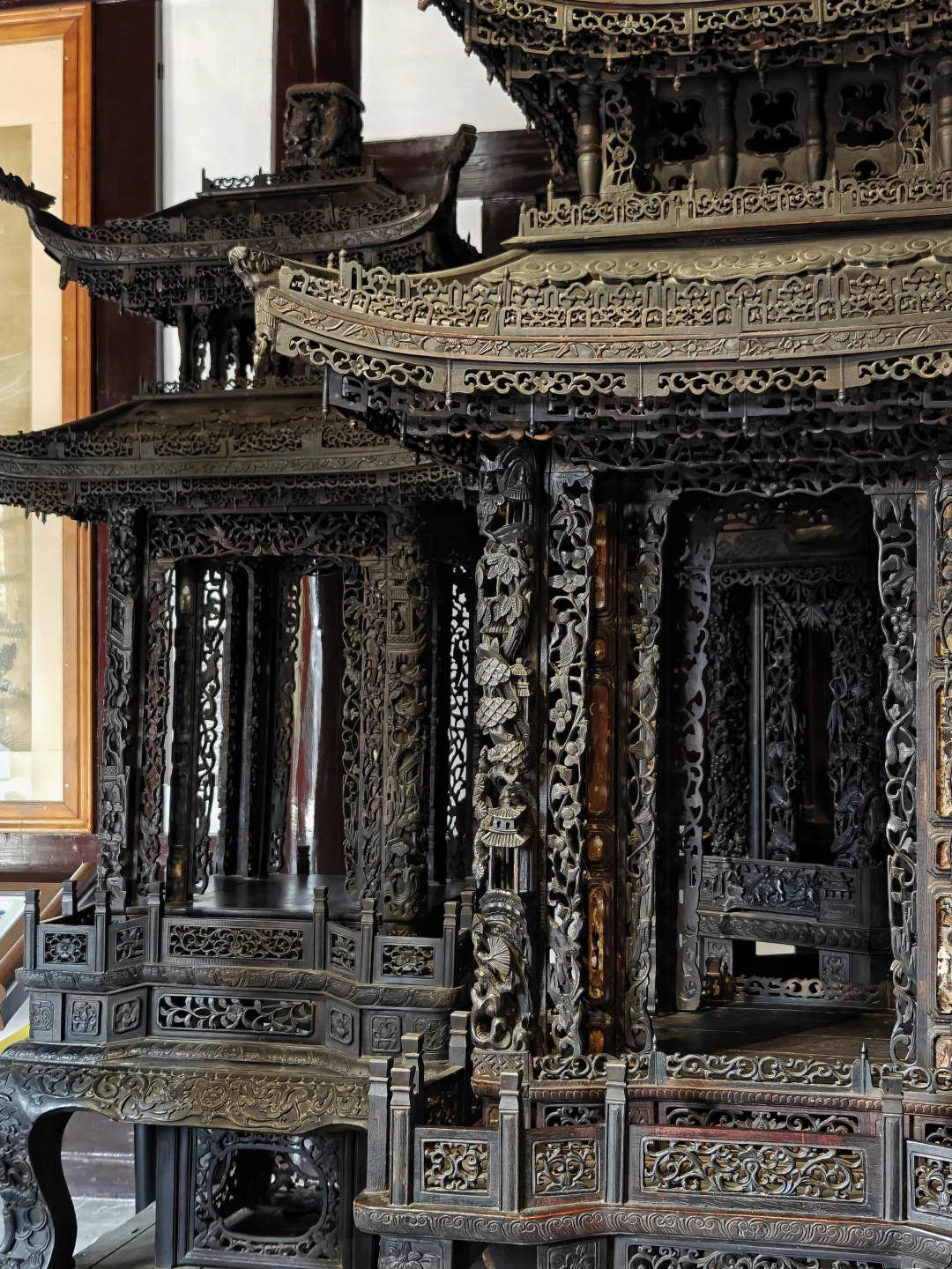 ·楠木厅:清代建,从南来观音庵内搬迁至此,一侧是石涛和几位大和尚墓