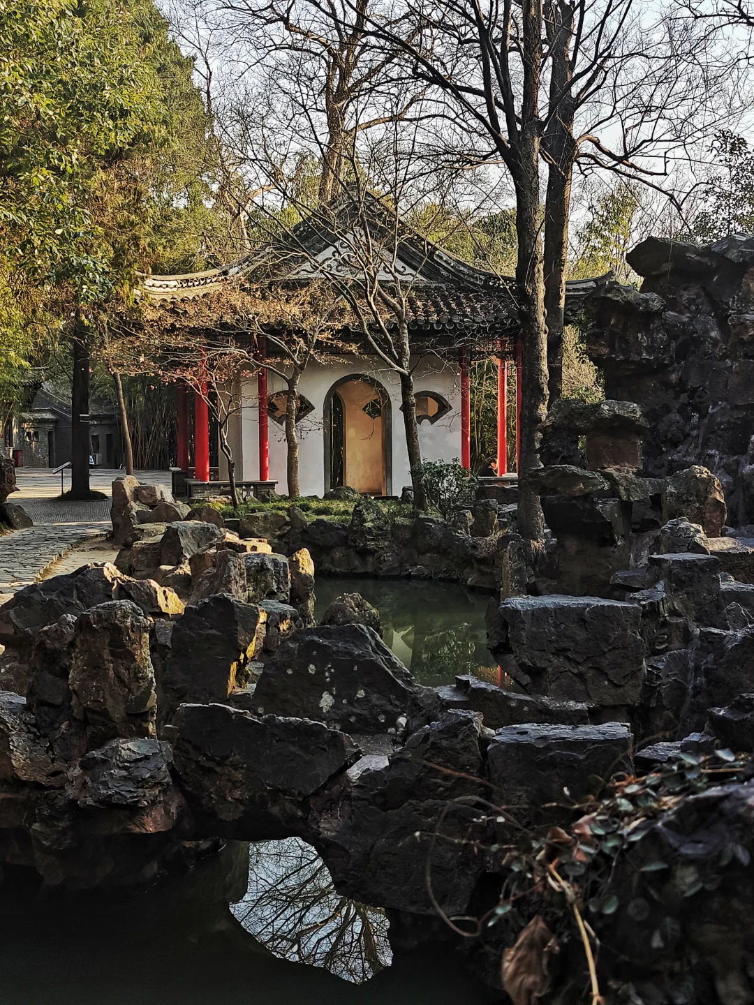 ·待月亭:与黄石假山(叠石名家后人利用园中旧石堆叠而成)相通,匾额为扬州名家魏之祯所书。爬上假山来到亭子背后稍坐片刻,颇有独占这一方小天地与古人体会同样心境的时空交错感