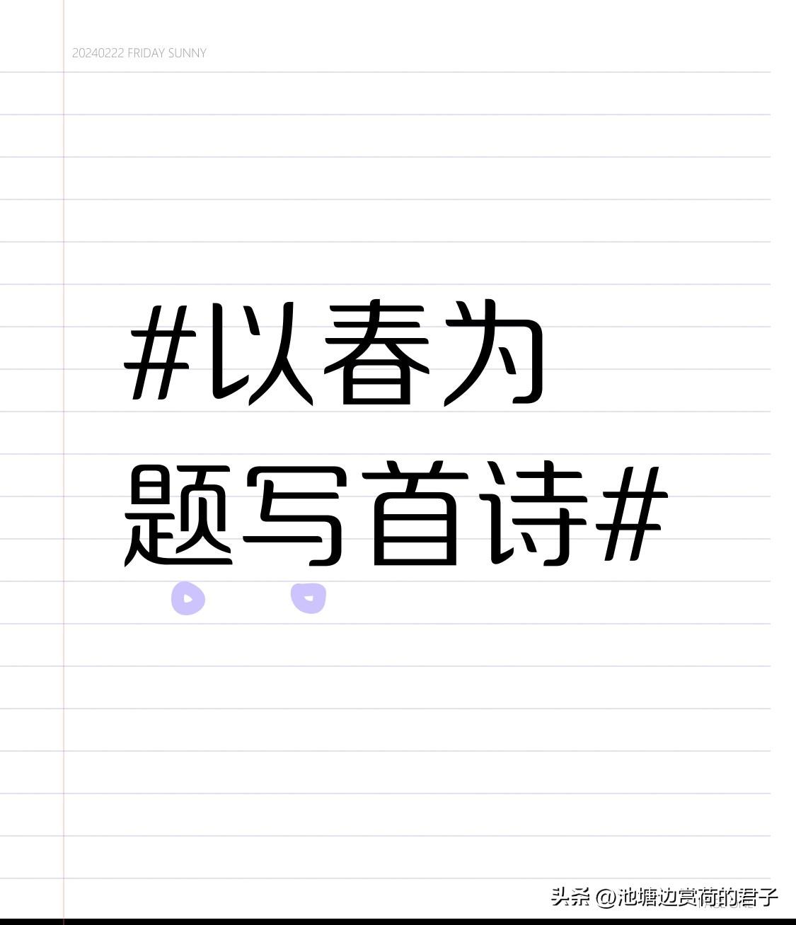 春之韵 春风轻吻柳丝梢, 燕舞呢喃筑梦巢。 桃蕊含羞添秀色, 青山着意换新袍。 溪水潺潺歌韵妙, 繁花簇簇笑声飘。 人间四月芳菲盛, 醉赏春光意兴高。 春天总是充满了生机与希望,每一处景色都像是大自然精心绘制的画卷。那轻柔的春风,仿佛一双温柔的手,抚摸着世间万物。桃花的粉嫩、燕子的灵动,还有溪水的欢唱,都让春天变得格外迷人。我写下这首诗,就是想把这份对春天的喜爱与大家分享。