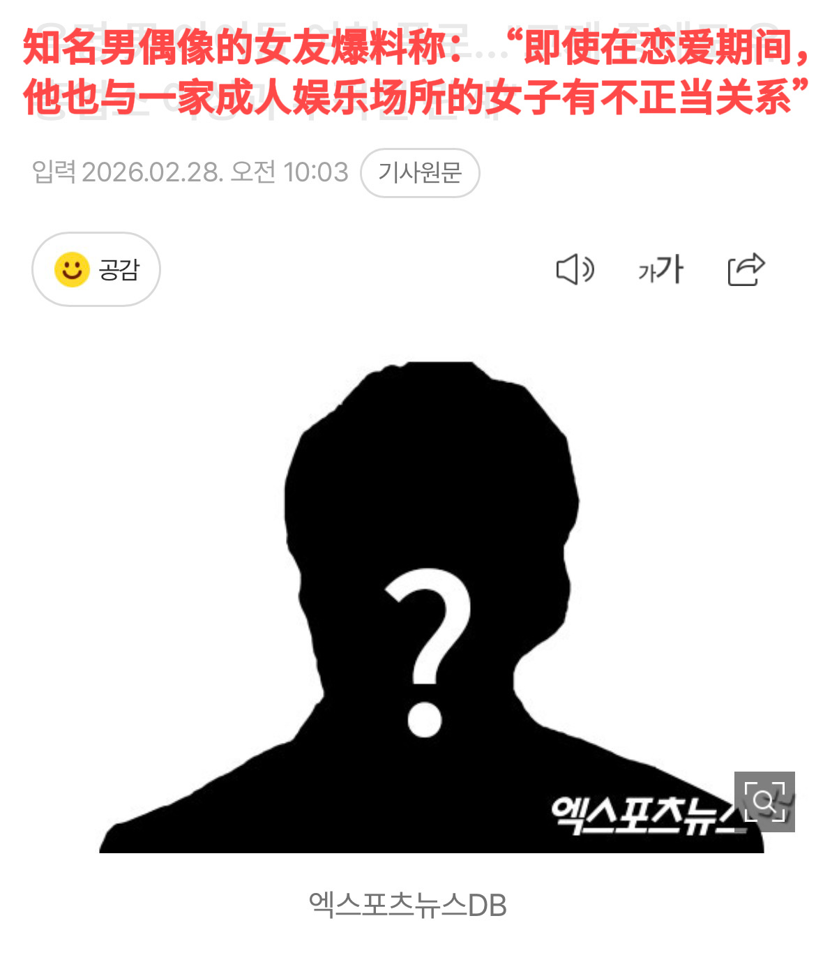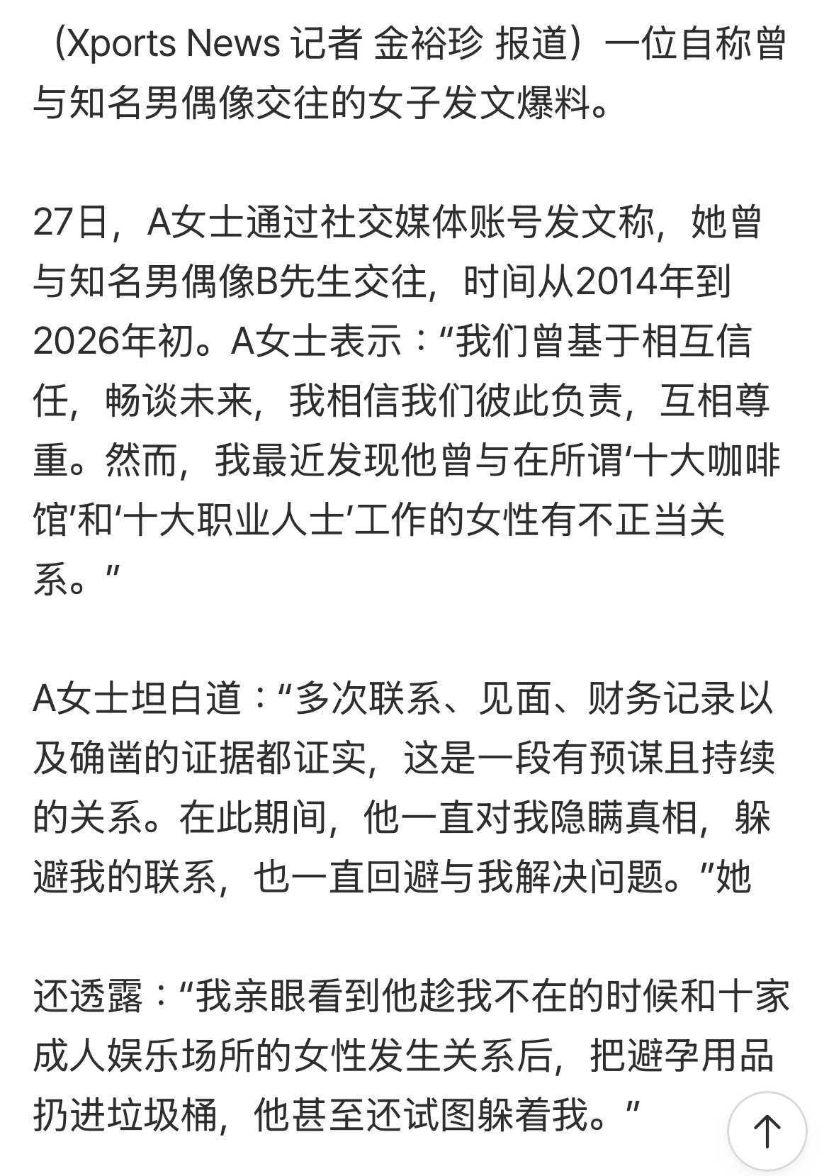 曝知名男爱豆劈腿交往十年女友,女友发现之后找借口推卸责任,直接断联目前已知信息交