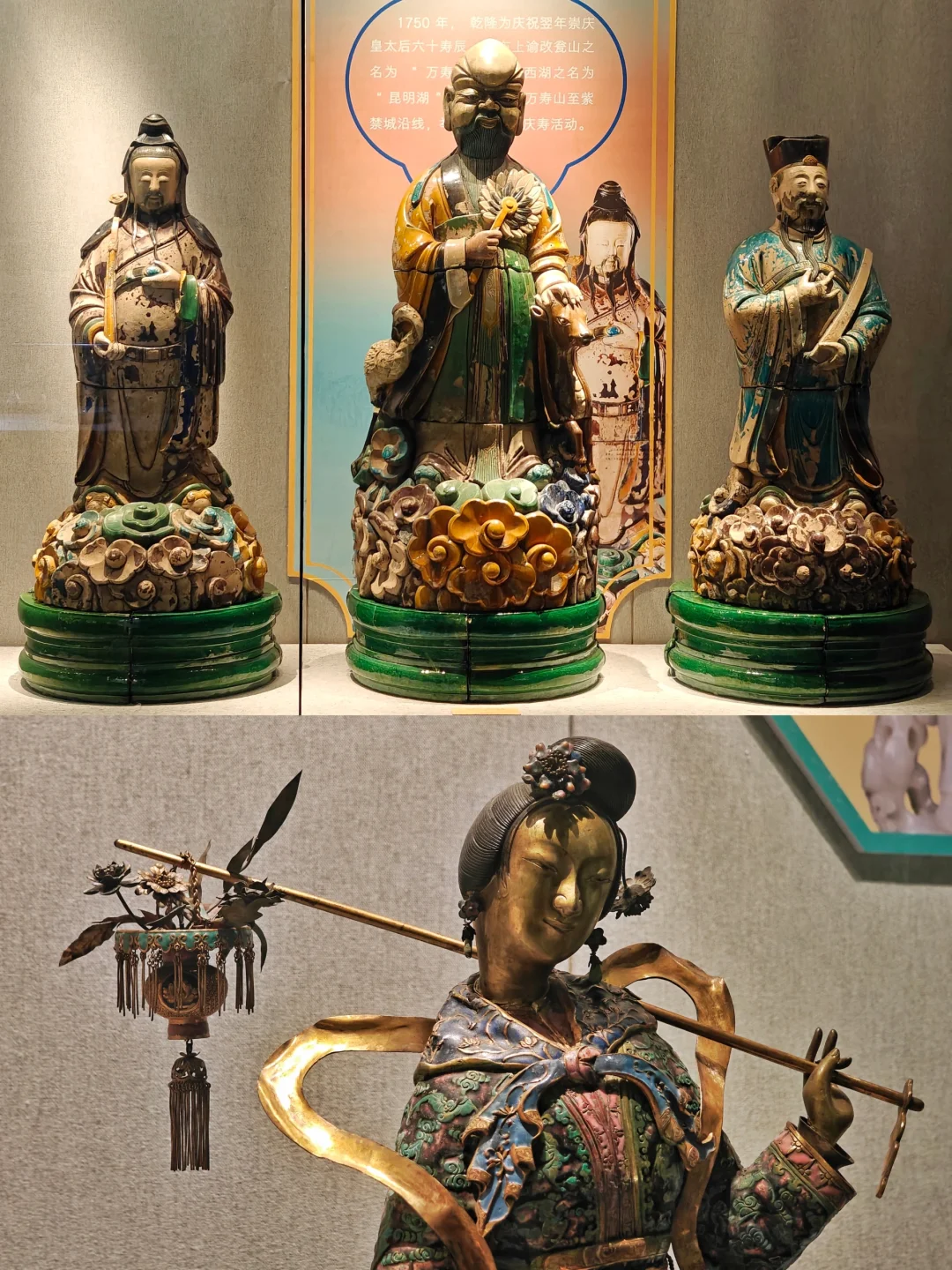 🏺原位于清漪园转轮藏正殿屋脊上的三座琉璃构件自西向东分别为“福”“寿” “禄”(图3为禄星,宁理老师是你吗!)。而园内藏品不少也都有贺寿等吉祥寓意,如麻姑献寿、东方朔偷桃、三星庆寿、八仙如意等题材的玉器和珐琅器等。