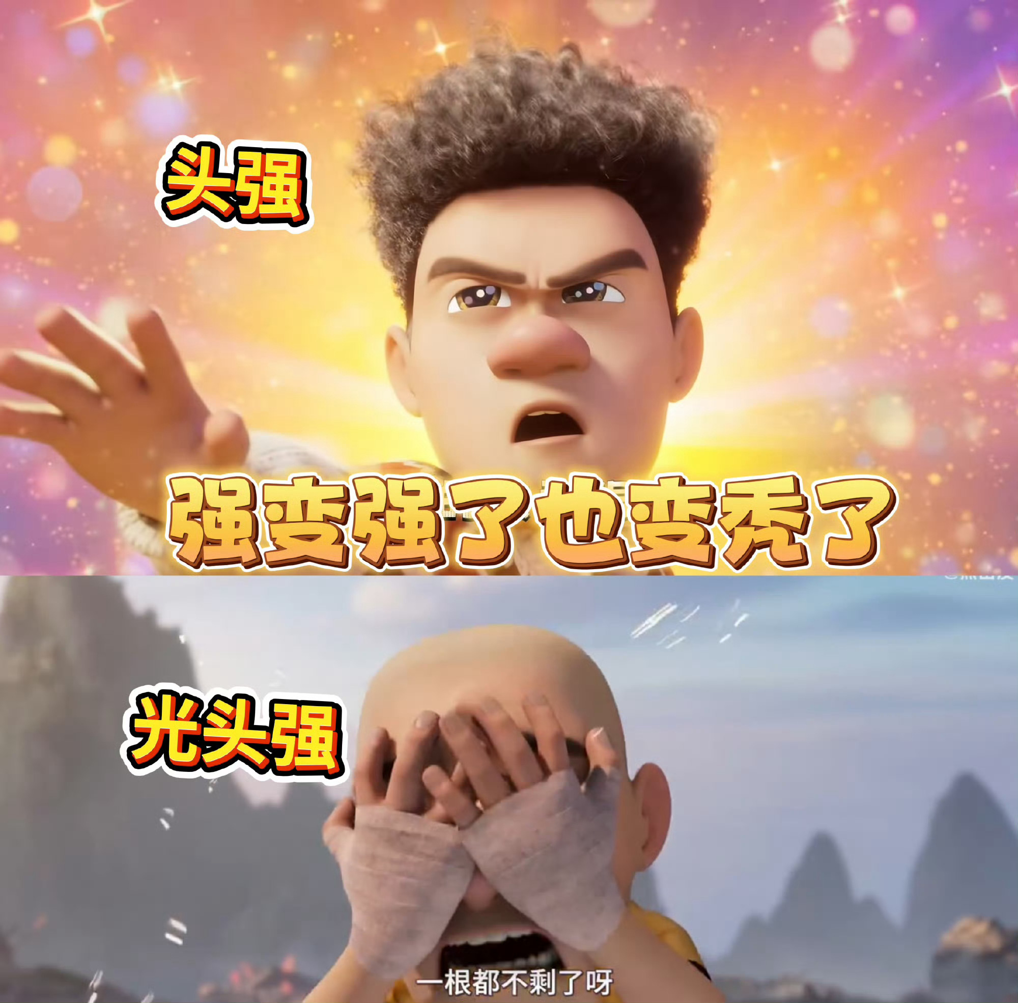 光头强的头发又不长了强哥大战后直接进化成满级大佬,结果头发集体“罢工”一根没剩,这波“变强必秃”的设定也太真实了!还好有熊大在线补刀:“没头发才是正版光头强,长出来反倒不正宗了!” 别说,没了头发遮挡,强哥的帅脸360°无死角,又勇又能扛的样子照样帅到炸,这才是我们认识的靠谱强哥啊!