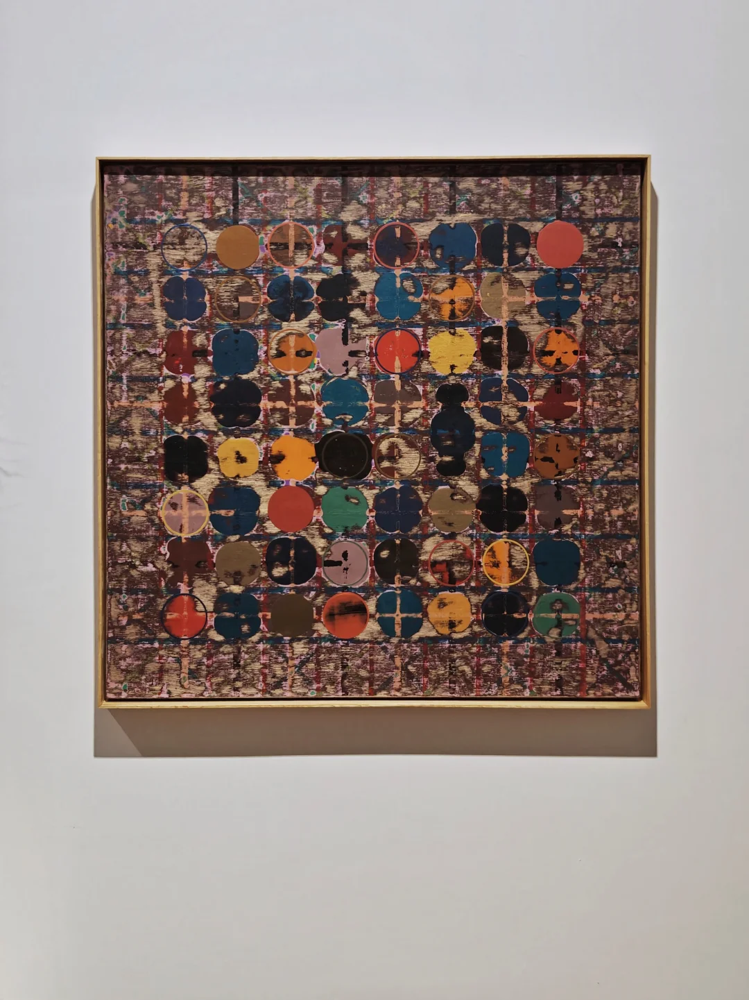 木板上丙烯综合技法,冷静抽象语言,表达个体经验、重复劳作与社会秩序。